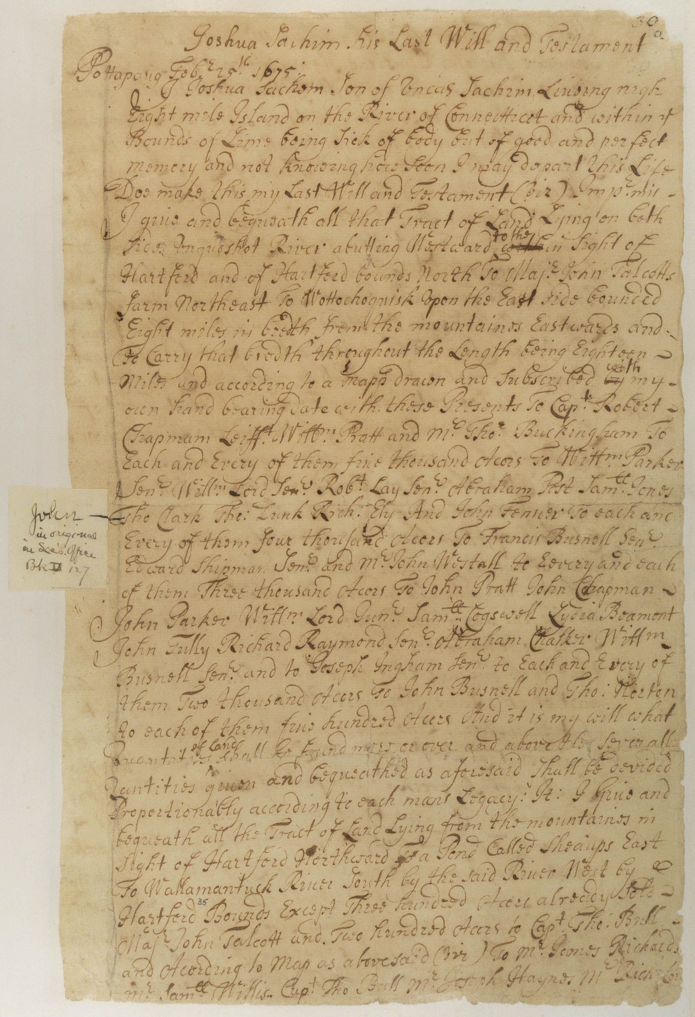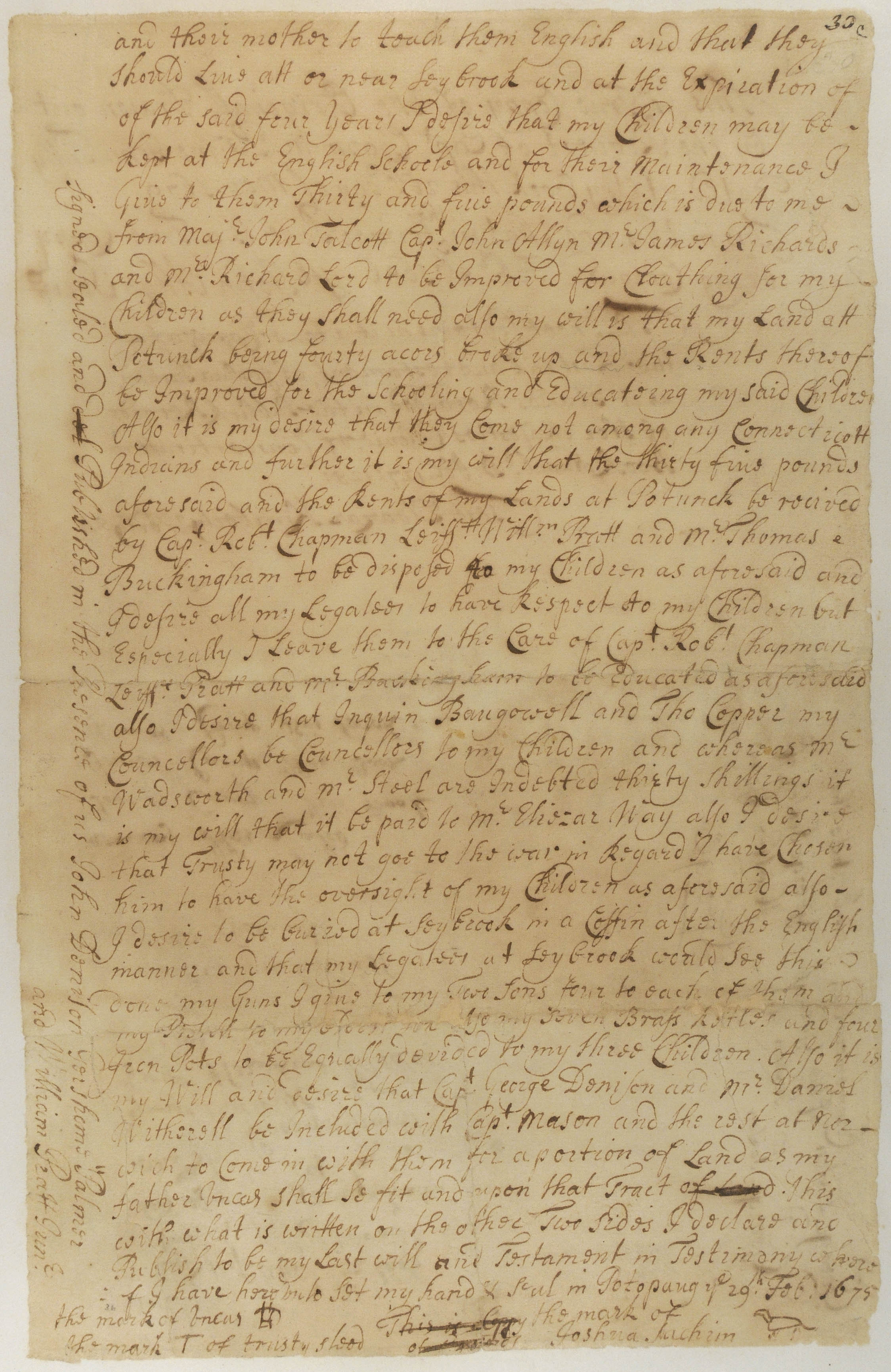Will of Joshua, Son of Uncas and Sachem of Niantic