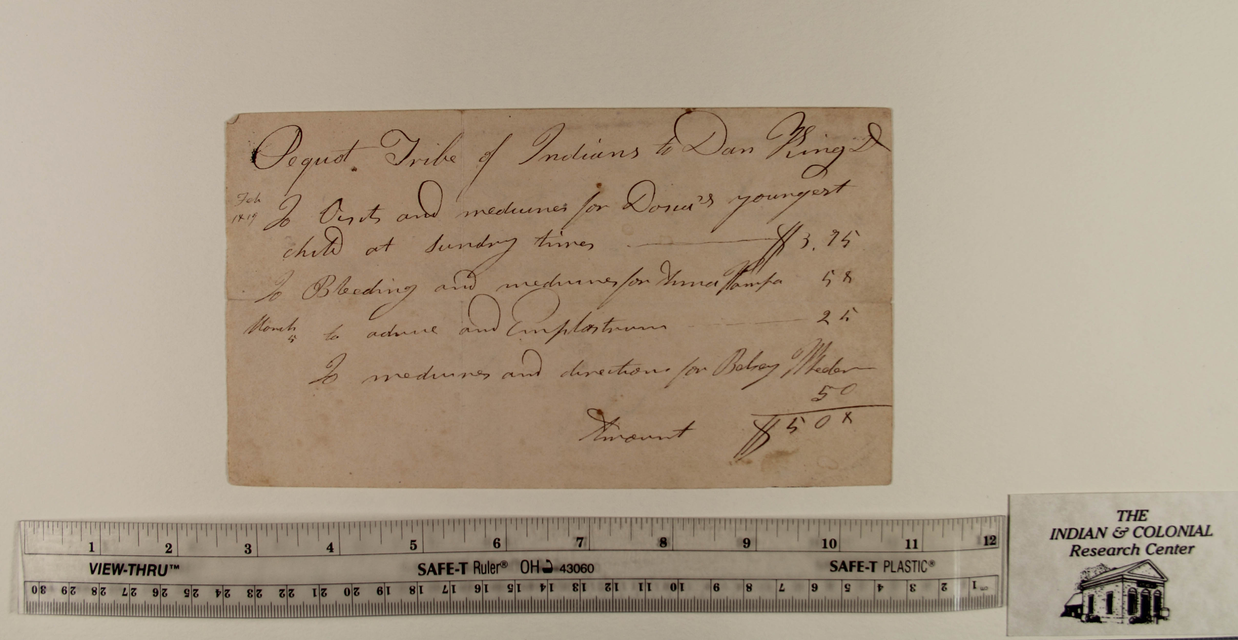 Reciept of Dr. Dan King for Services Provided the Pequot Tribe