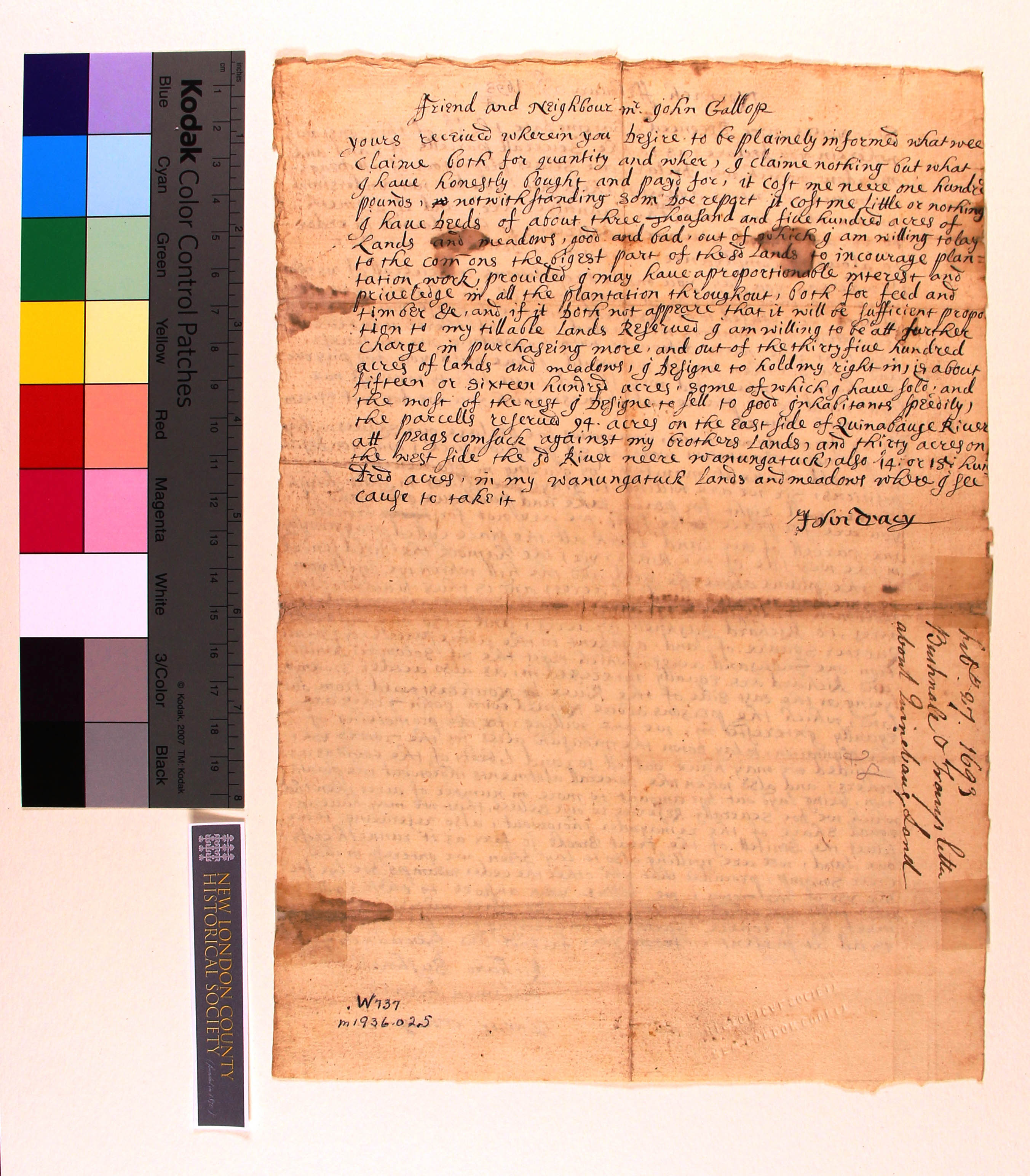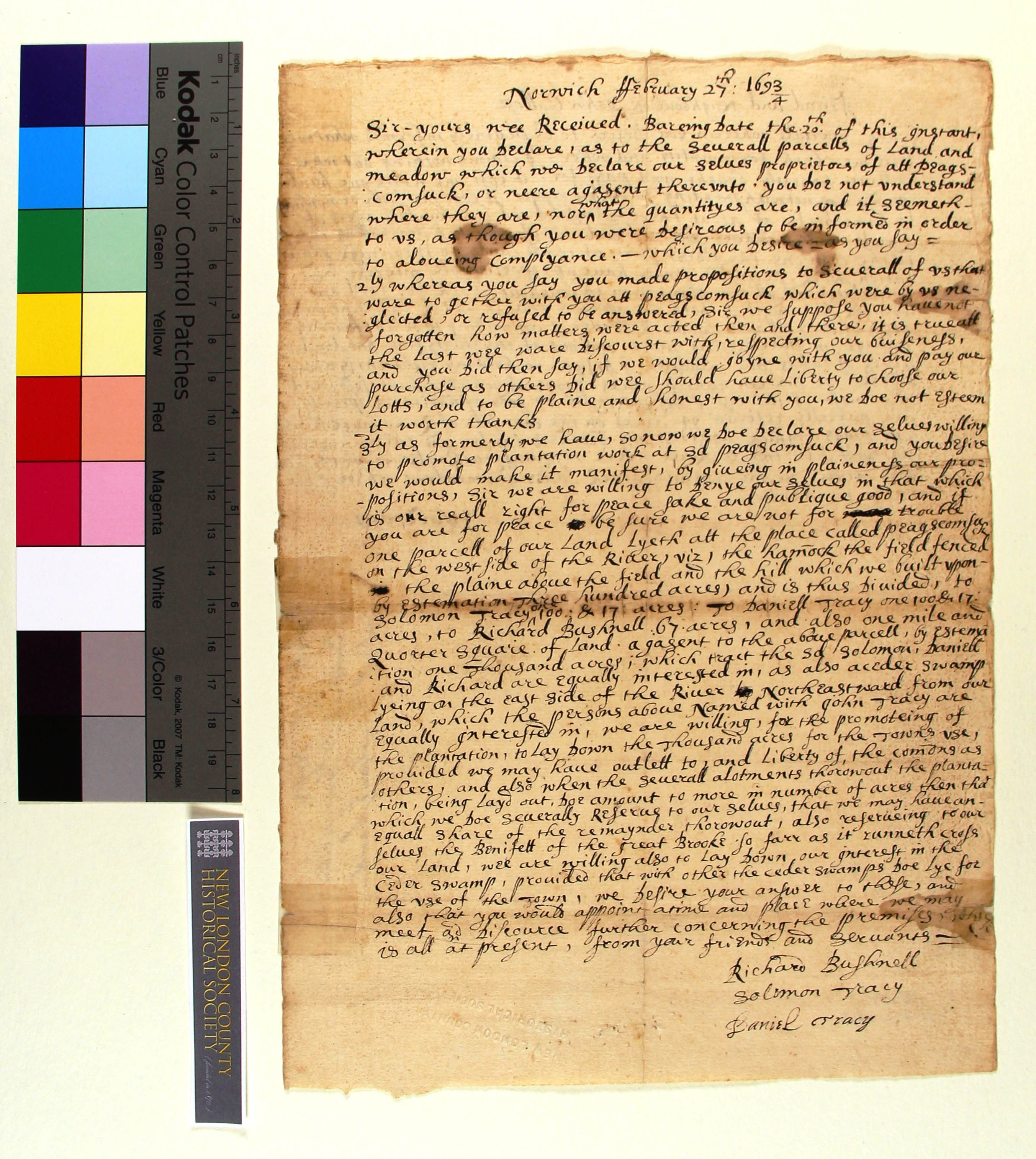 Bushnell and Tracy's Letter about Quinebaug Land