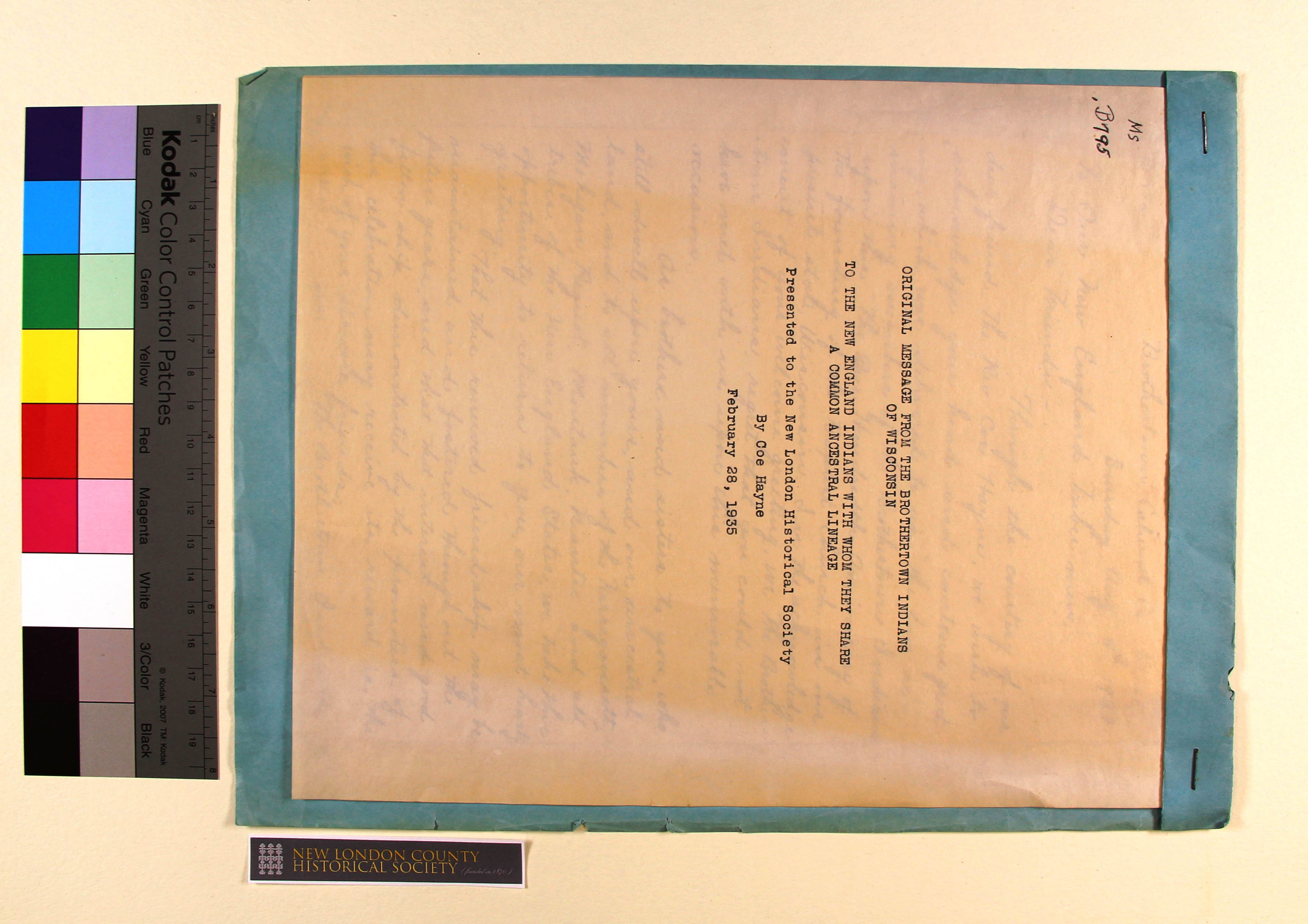 Original Message from the Brothertown Indians of Wisconsin to the New England Indians with whom they Share a Common Ancestral Lineage