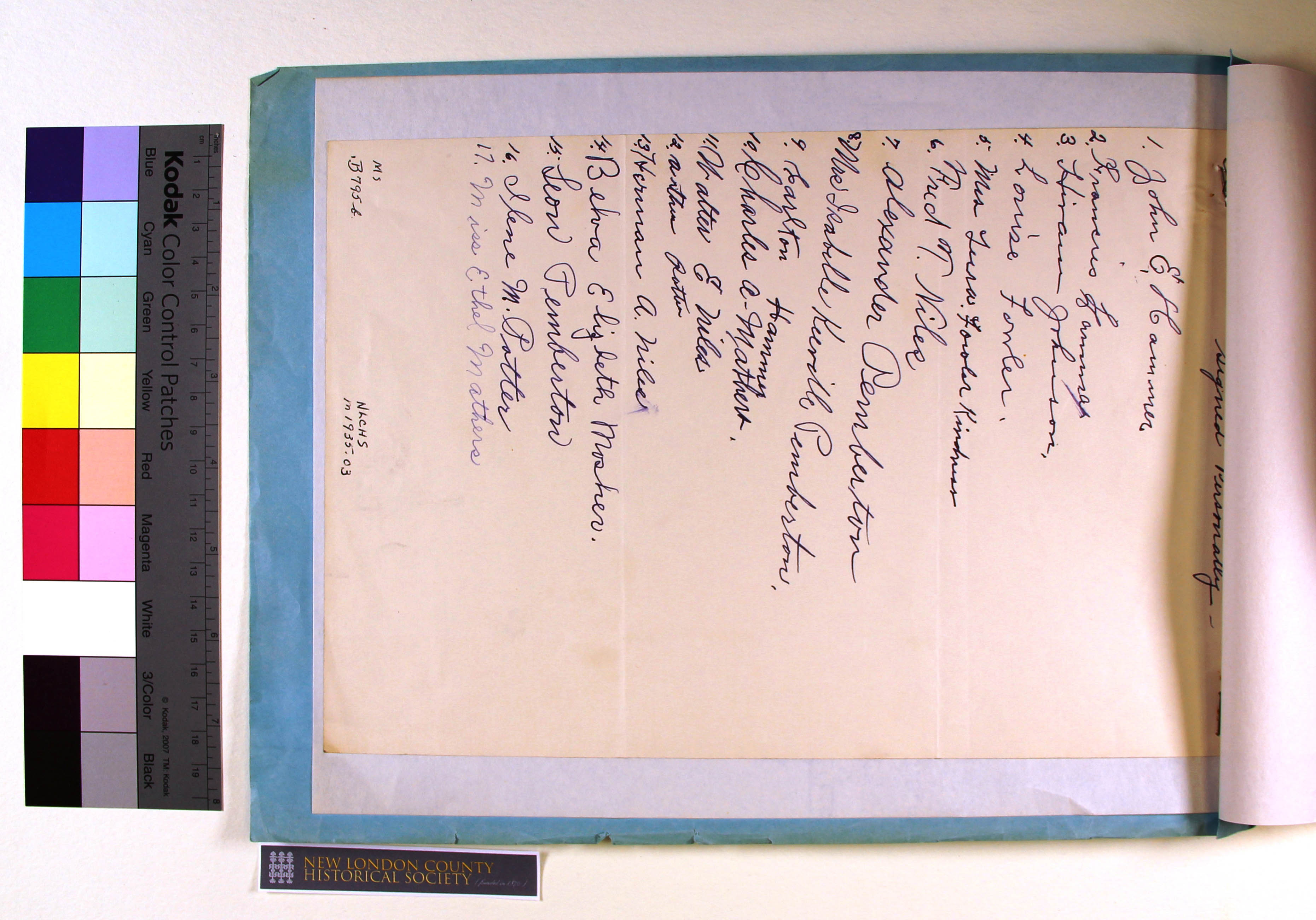 Images may be used only for purposes of research, private study or education. To publish, exhibit, or broadcast this image, permission must be requested and granted in writing. For additional information regarding copyright and publication contact the New London County Historical Society, Inc., 11 Blinman Street, New London, CT 06320, (860) 443-1209.