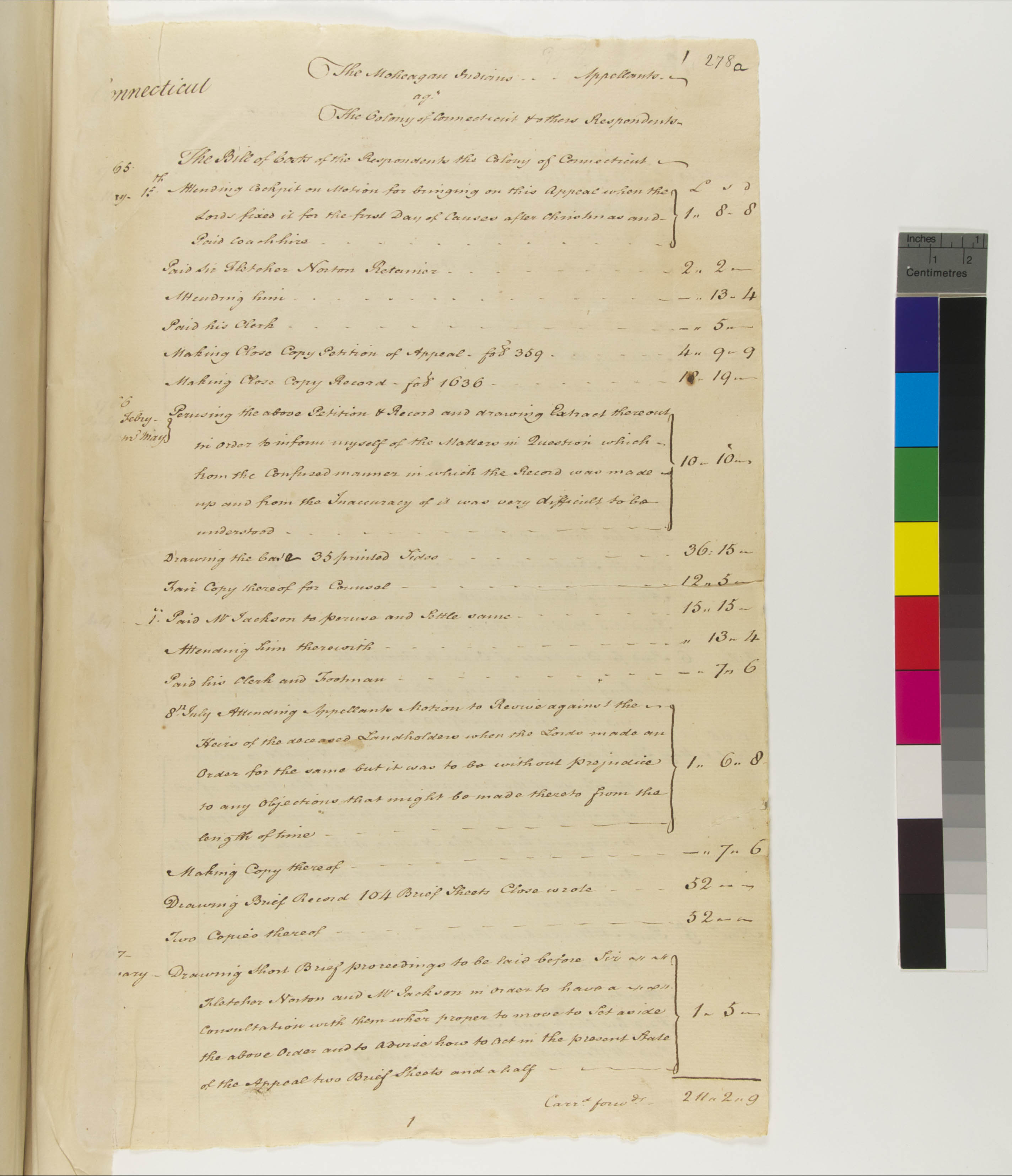 A Bill of Costs of the Colony of Connecticut in the Mohegan Case