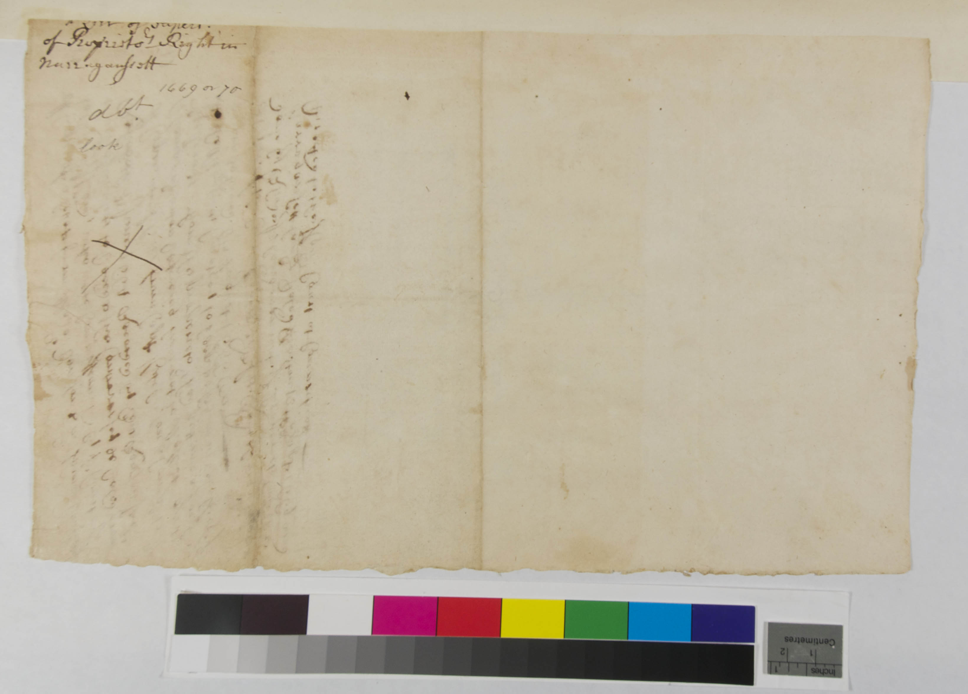 Allyn, John, 1631-1696 (Mentioned within document); Atherton, Humphrey, 1608-1661 (Mentioned within document); Button, John (Mentioned within document); Clarke, Daniel (Mentioned within document); Cotton, William (Mentioned within document); Dallaner, Mr (Mentioned within document); Danforth, Thomas, 1623-1699 (Mentioned within document); Denison, George (Mentioned within document); Garrett, Harman, -1678 (Mentioned within document); Hudson, William (Mentioned within document); Hutchinson, Edward, 1613-1675 (Mentioned within document); Leech, Anthony (Mentioned within document); Ninigret, -1677 (Mentioned within document); Oomtochowe (Mentioned within document); Paine, John (Mentioned within document); Pessicus, 1623-1676 (Mentioned within document); Queneinigus (Mentioned within document); Rawson, Edward, 1615-1693 (Mentioned within document); Rhodes, John (Mentioned within document); Richardson, Amos (Mentioned within document); Saffin, John (Handwriting); Scuttup (Mentioned within document); Stanton, Thomas, 1616-1676 (Mentioned within document); Stuart, Charles (Mentioned within document); Tomtochowe (Mentioned within document); Unknown (Recipient); Updike, Lodowick (Mentioned within document); Viall, John (Mentioned within document); Williams, John (Mentioned within document); Winthrop, John, Jr. (Gov. CT), 1606-1676 (Mentioned within document)