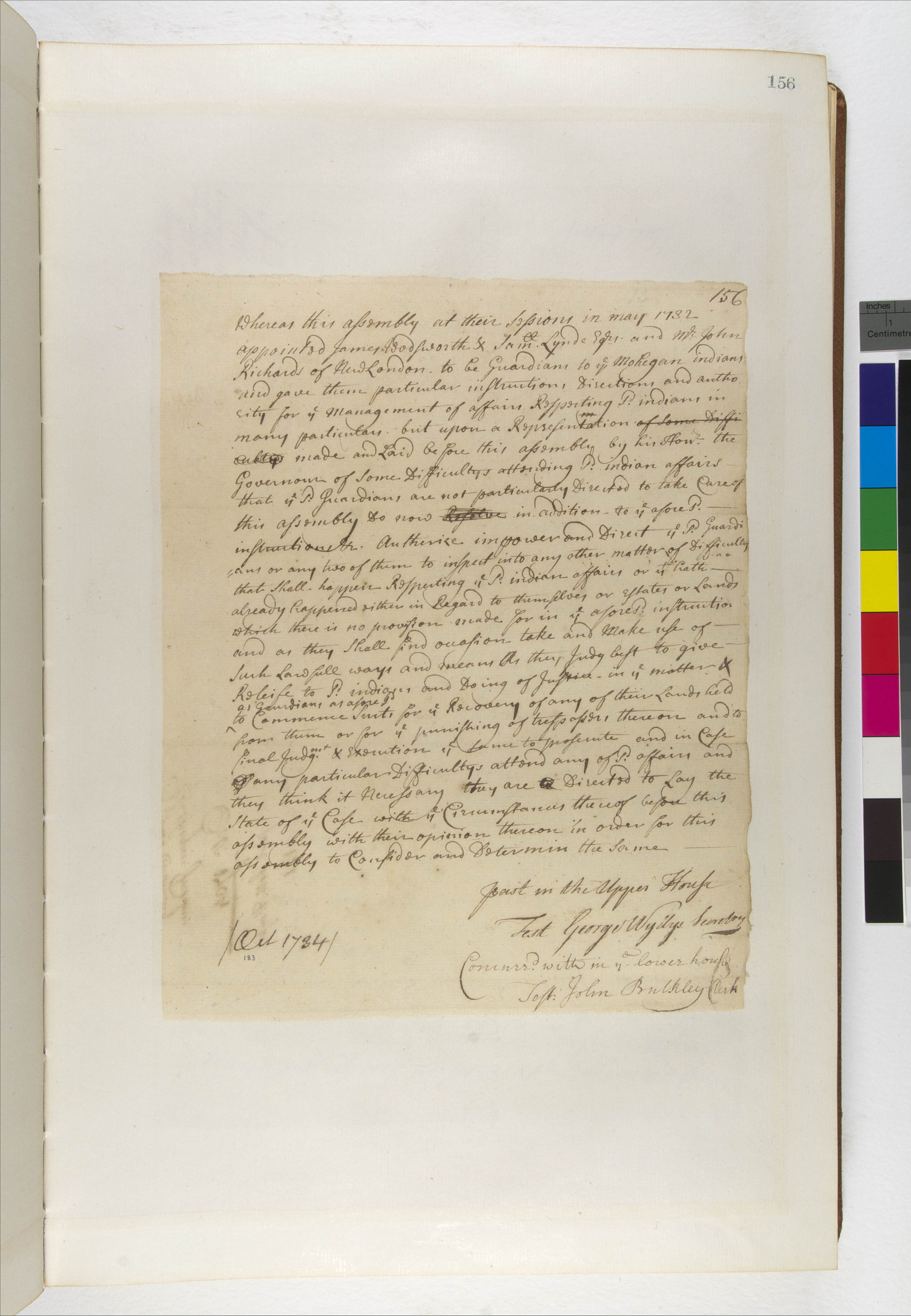 Government -- Colonial -- Colony of Connecticut -- General Assembly; Government -- Colonial -- Colony of Connecticut -- Guardians/Overseers; Land -- Complaints -- Trespass; Land -- Reservation/Reserve -- Mohegan; Law -- Legislative Process -- Acts/Resolves -- Accepted; Relations -- Colonial Affairs; Relations -- Tribal Affairs; Tribes/Communities -- Mohegan; YIPP -- Colony of Connecticut Collection, 1603-1783