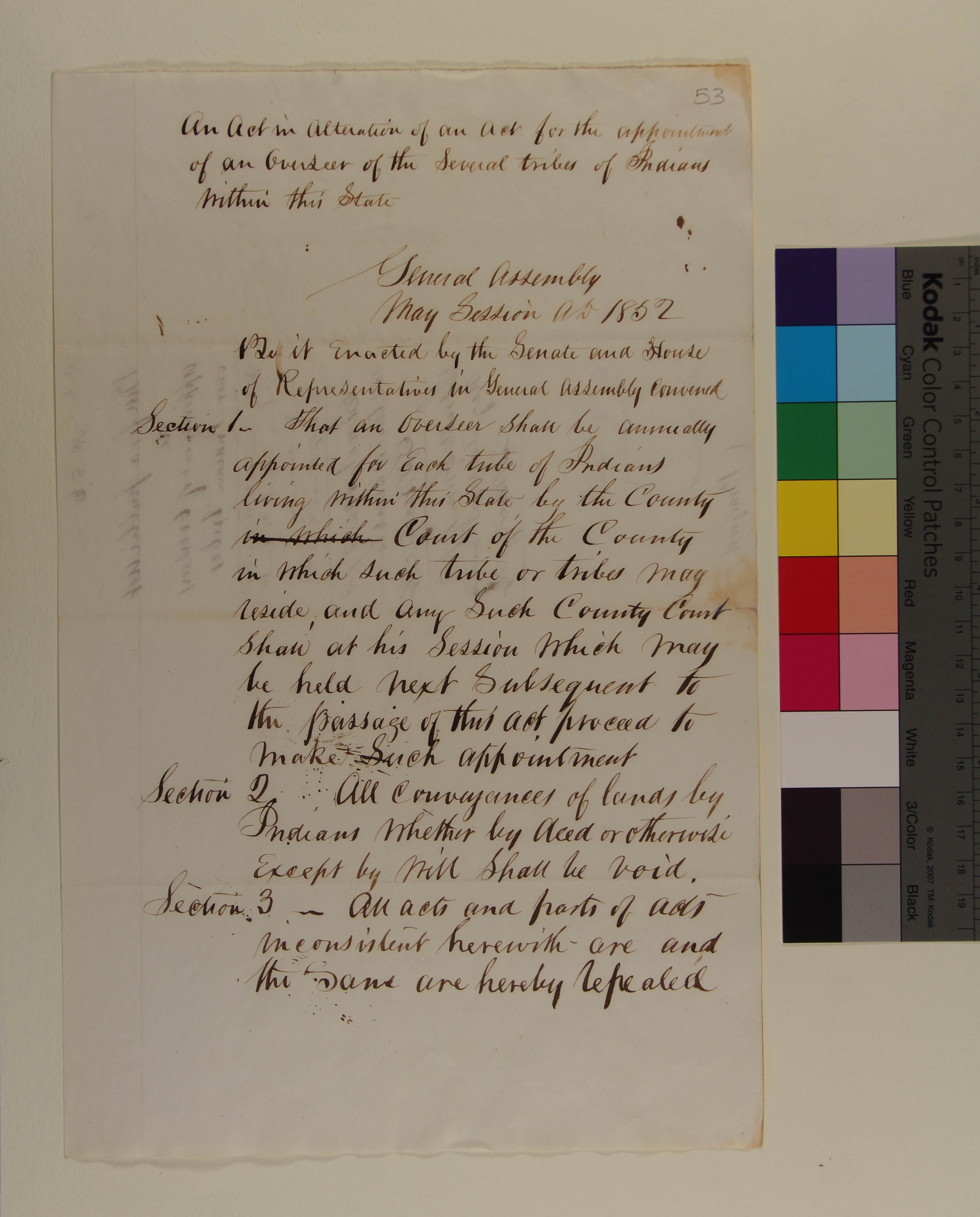 An Act in Alteration to an Act for the Appointment of an Overseer of the Several Tribes of Indians within this State