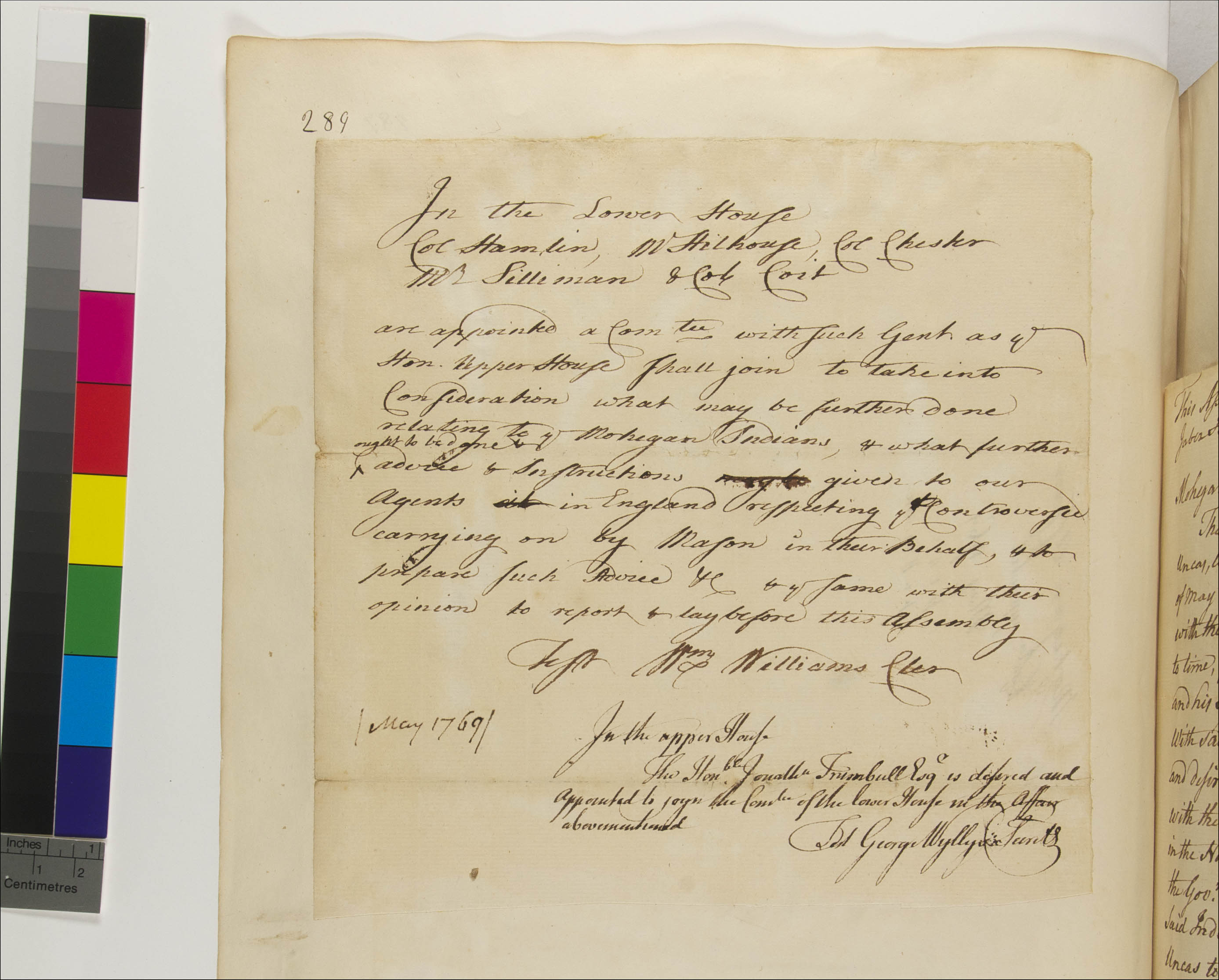 Culture -- Disputes; Government -- Colonial -- Colony of Connecticut -- General Assembly -- Committees; Government -- Colonial -- Colony of Connecticut -- General Assembly; Government -- Tribal -- Mohegan -- Pro-Government Faction -- Sachems/Sagamores -- Ben Uncas III (1746-1769); Land -- Complaints -- Controversies; Land -- Reservation/Reserve -- Mohegan; Law -- Legislative Process -- Appointment -- Accepted; Law -- Legislative Process -- Reports; Relations -- Colonial Affairs; Relations -- Tribal Affairs; Repository -- Connecticut State Library; Tribes/Communities -- Mohegan; YIPP -- Colony of Connecticut Collection, 1603-1783