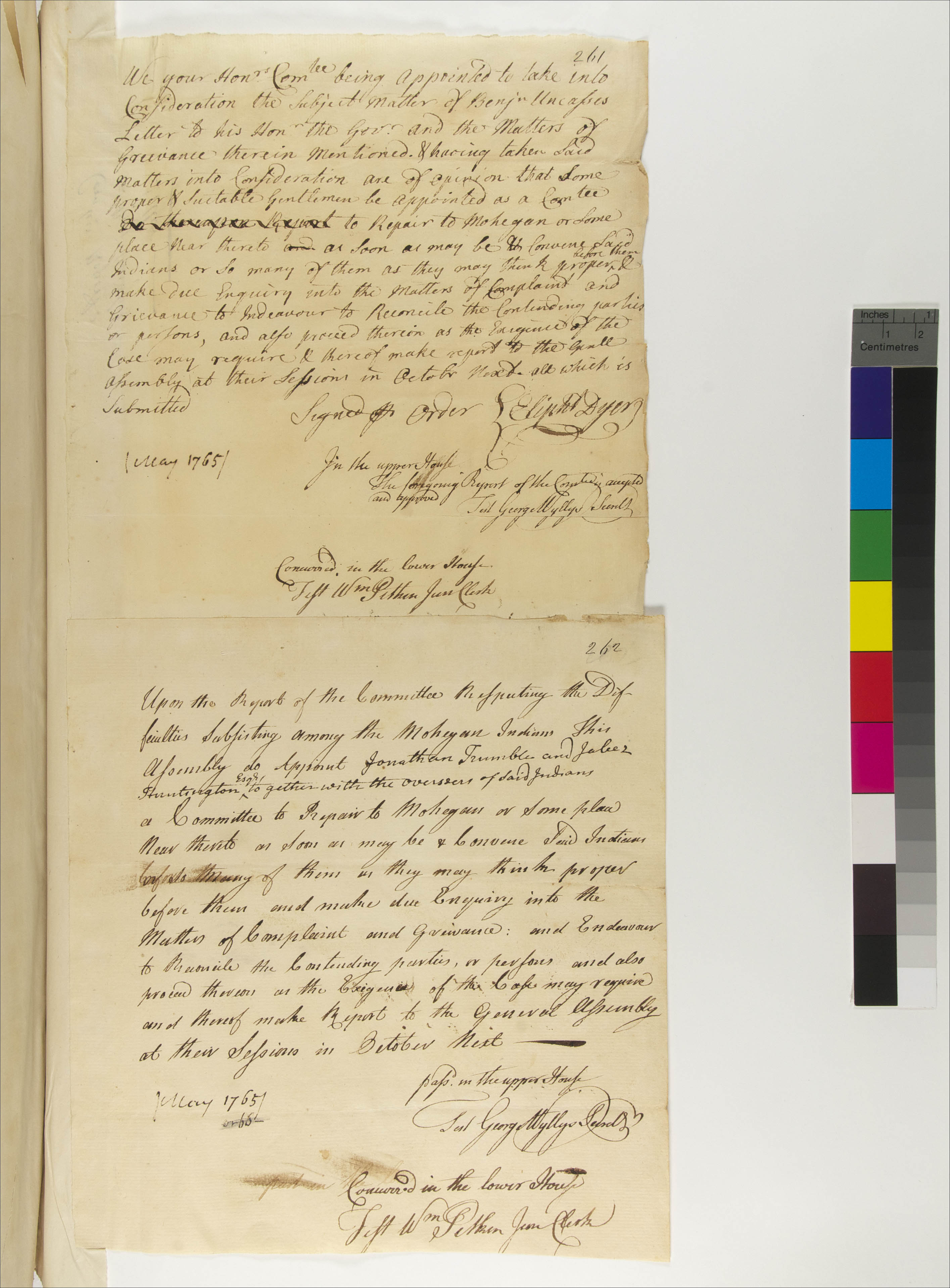 Government -- Colonial -- Colony of Connecticut -- General Assembly -- Committee ; Government -- Colonial -- Colony of Connecticut -- Guardians/Overseers; Government -- Tribal -- Mohegan -- Pro-Government Faction -- Sachems/Sagamores -- Ben Uncas III (1746-1769); Land -- Complaints -- Controversies -- Mohegan Case; Land -- Reservation/Reserve -- Mohegan; Law -- Imperial Actions -- Case Names -- Mohegan Case; Law -- Legislative Process -- Appointment -- Accepted; Relations -- Colonial Affairs; Relations -- Tribal Affairs; Repository -- Connecticut State Library; Tribes/Communities -- Mohegan; YIPP -- Colony of Connecticut Collection, 1603-1783