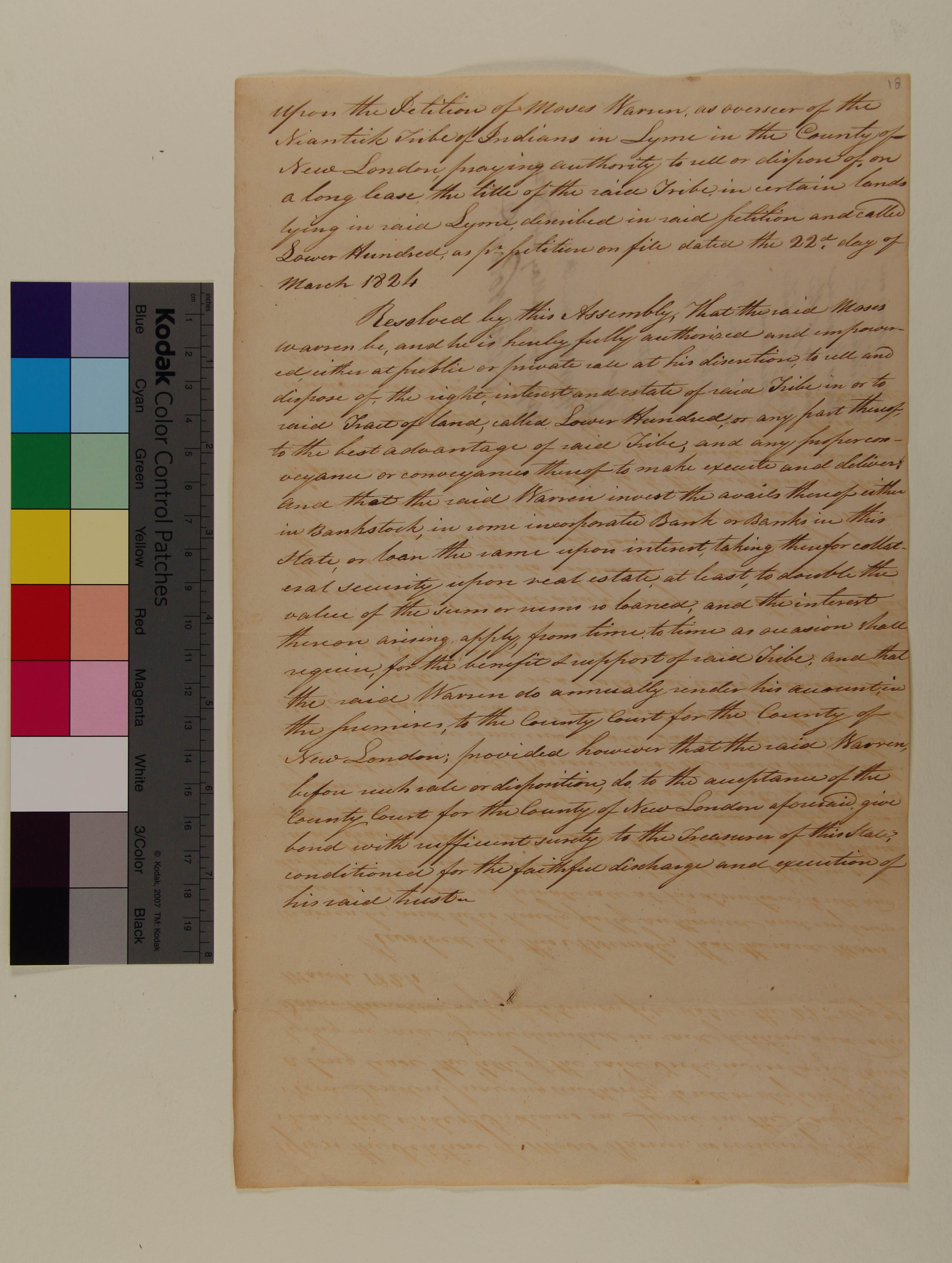 Bill in Form on Petition of Moses Warren, Overseer of the Niantic Tribe of Indians