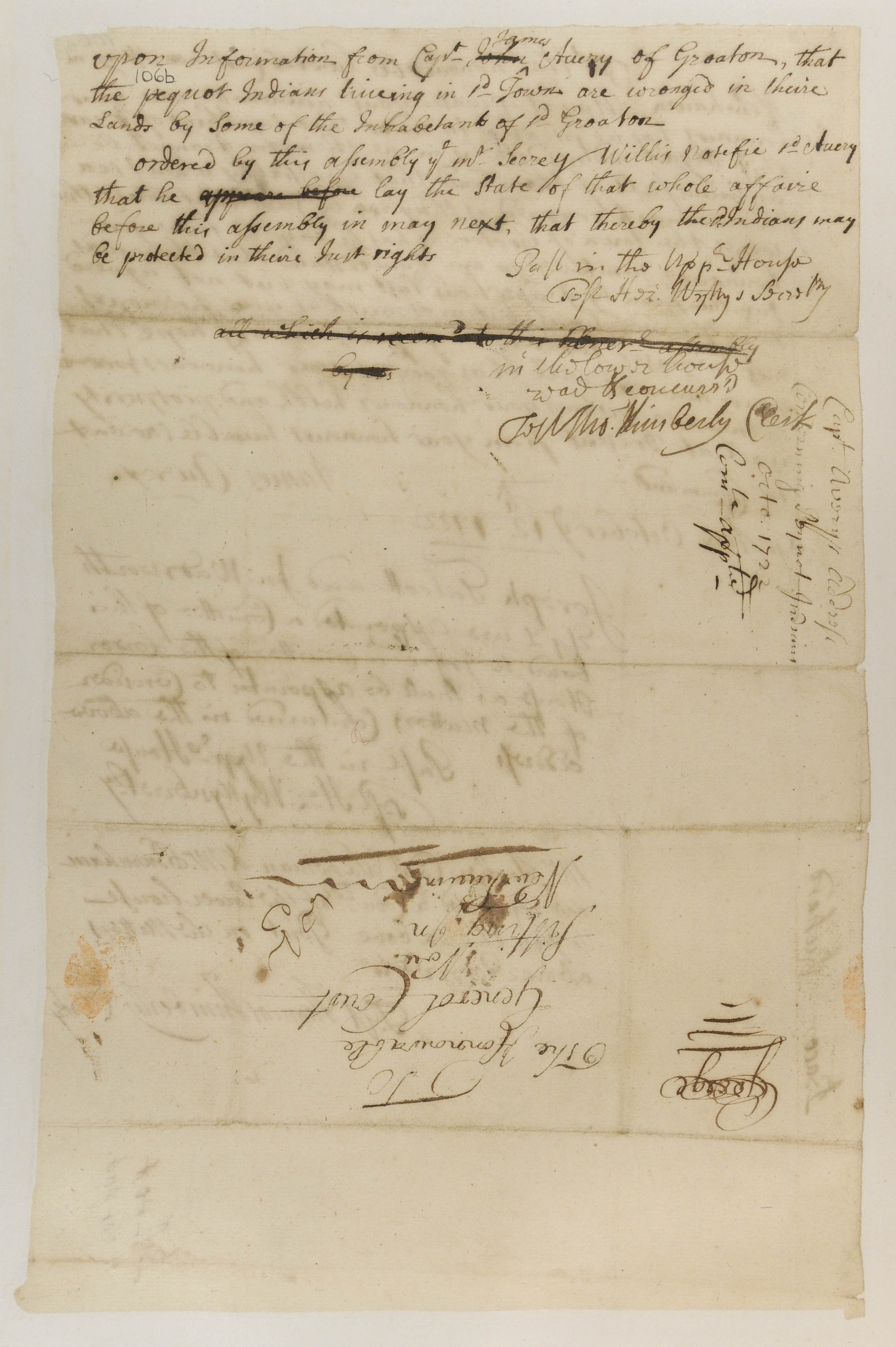 Government -- Colonial -- Colony of Connecticut -- Guardians/Overseers; Government -- Colonial -- Colony of Connecticut; Land -- Complaints -- Encroachment; Land -- Complaints; Land -- Reservation/Reserve -- Pequot -- Western; Law -- Legislative Process -- Appointment; Relations -- Colonial Affairs; Relations -- Tribal Affairs; Tribes/Communities -- Pequot -- Western; YIPP -- Colony of Connecticut Collection, 1603-1783