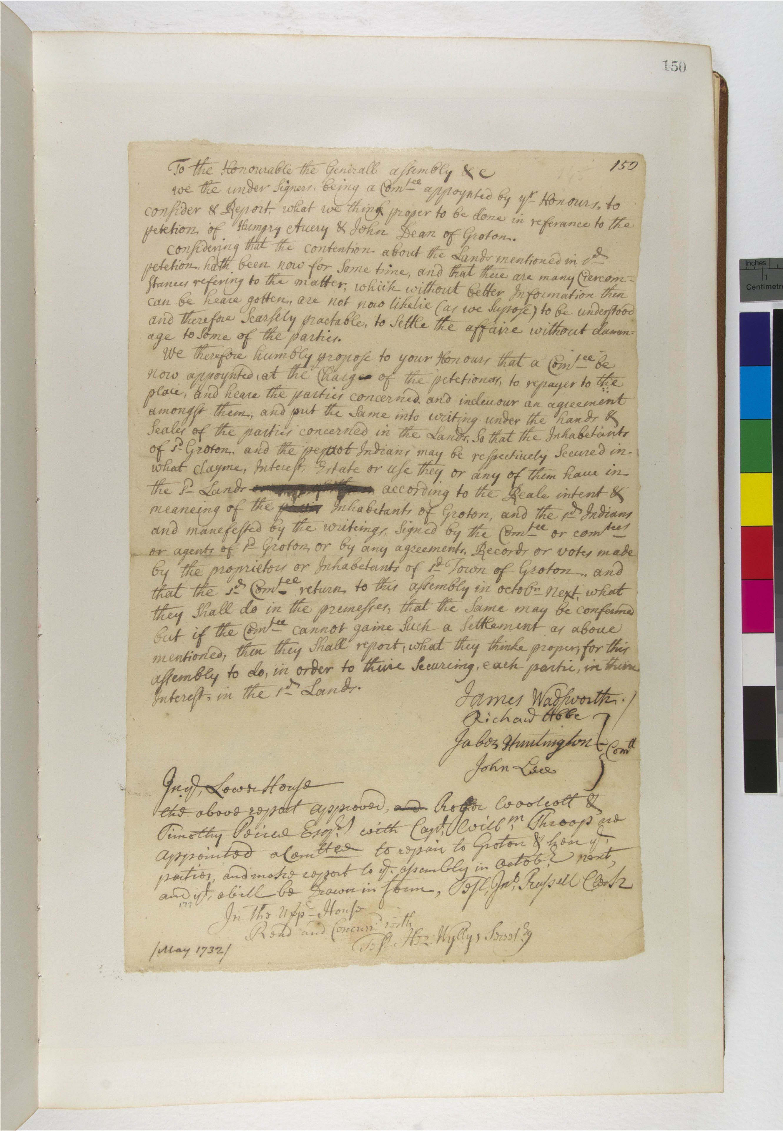 Government -- Colonial -- Colony of Connecticut -- General Assembly; Land -- Complaints; Land -- Conveyances; Land -- Reservation/Reserve -- Pequot -- Western; Land -- Use; Law -- Legislative Process -- Reports -- Accepted; Relations -- Colonial Affairs; Relations -- Tribal Affairs; Tribes/Communities -- Pequot -- Western; YIPP -- Colony of Connecticut Collection, 1603-1783
