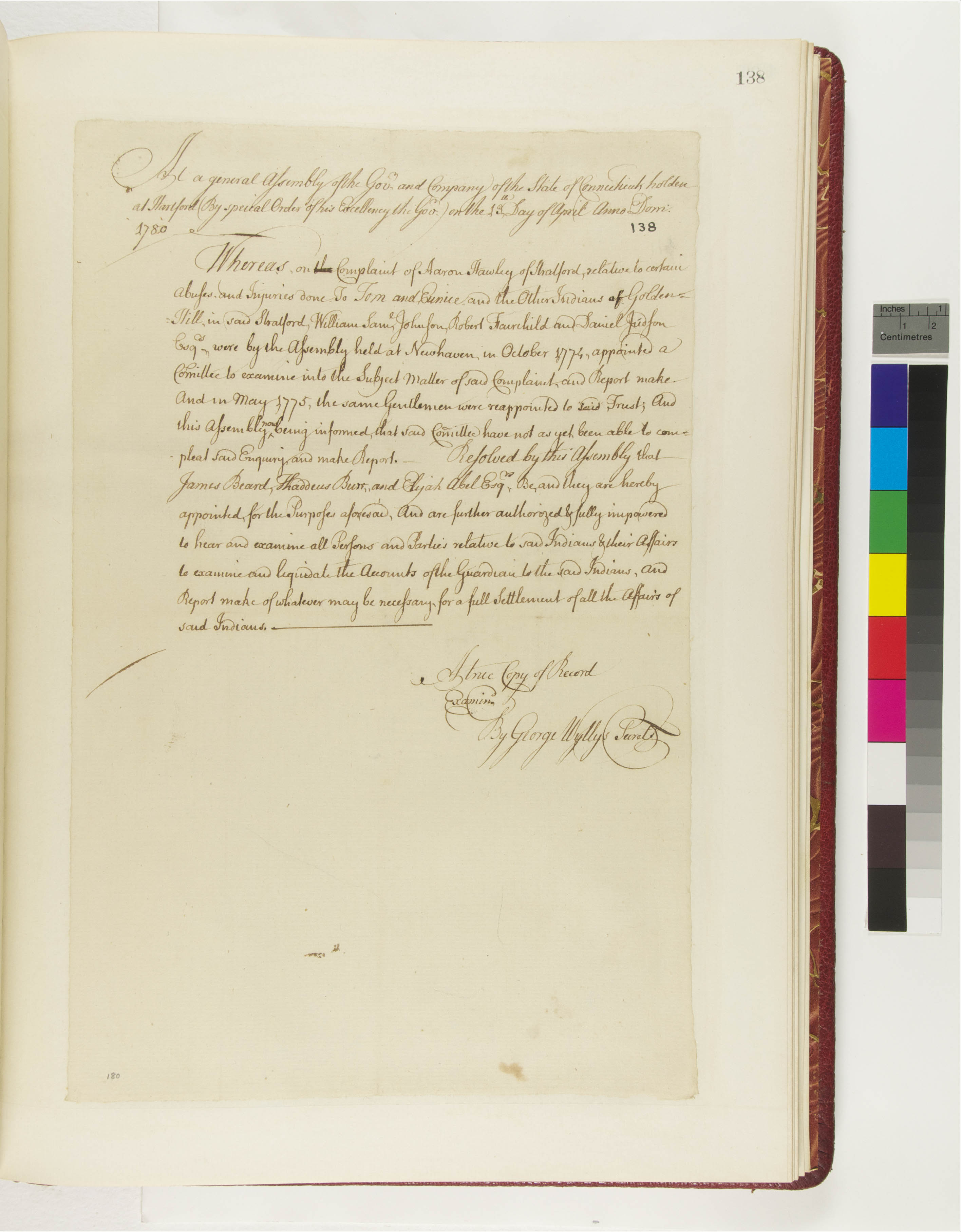 Accounting/Finance -- Overseer Records; Government -- Colonial -- Colony of Connecticut -- General Assembly -- Committees; Government -- Colonial -- Colony of Connecticut -- Guardians/Overseers; Land -- Reservation/Reserve -- Paugusset -- Golden Hill; Law -- Legislative Process -- Acts/Resolves; Relations -- Colonial Affairs; Relations -- Tribal Affairs; Tribes/Communities -- Paugusset -- Golden Hill; YIPP -- Colony of Connecticut Collection, 1603-1783