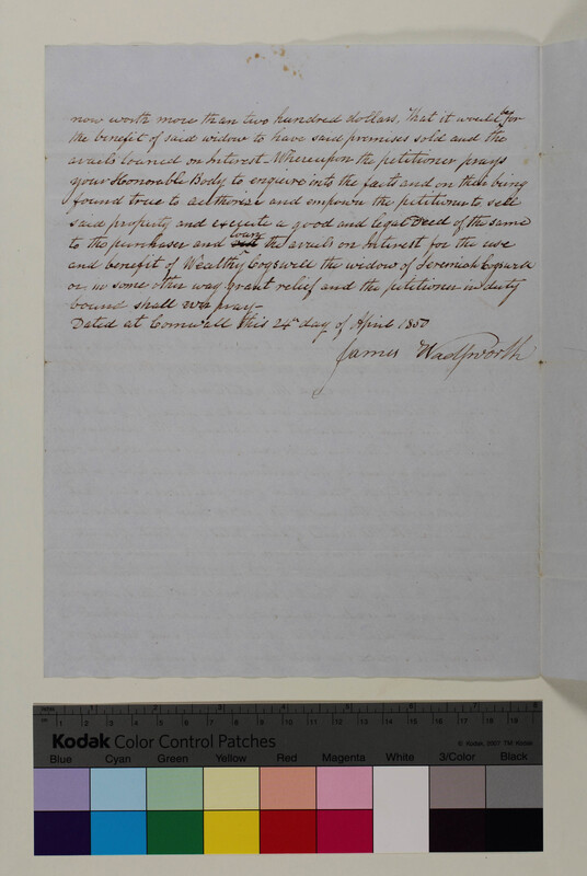 James Wadsworth's Petition Praying to be Authorized to Sell a Piece of owned by Jeremiah Cogswell