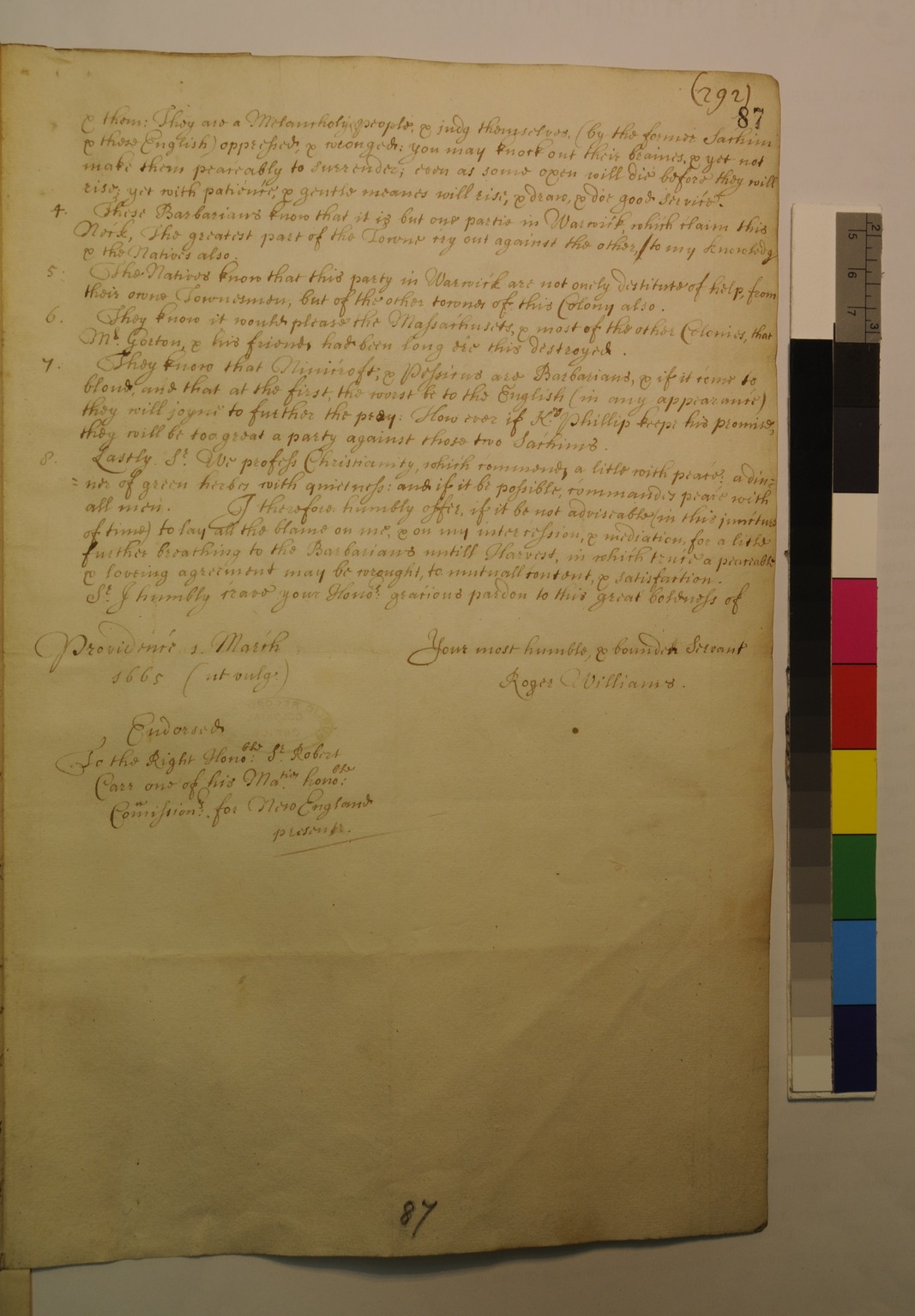 Abstract Ideas -- Peace & Friendship; Abstract Ideas -- Savageness; Animals -- Oxen; Government -- Colonial -- Colony of Rhode Island -- Towns -- Warwick; Government -- Colonial -- Massachusetts Bay Colony -- General Assembly; Government -- Colonial -- Massachusetts Bay Colony -- General Court; Government -- Imperial -- Agencies -- King's Commissioners; Government -- Tribal -- Narragansett; Government -- Tribal -- Shawomet; Government -- Tribal -- Wampanoag -- Sachems/Sagamores -- Metacom; Land -- Complaints; Land -- Conveyances; Land -- Land Ownership -- Land Companies -- The Atherton Group; Land -- Native Right; Land -- Reservation/Reserve -- Shawomet; Military -- Indian Conspiracies; Relations -- Colonial Affairs; Relations -- Imperial Affairs; Relations -- Inter-Tribal Affairs; Relations -- Tribal Affairs; Religion/Beliefs -- Christianity; Tribes/Communities -- Narragansett; Tribes/Communities -- Shawomet; Tribes/Communities -- Wampanoag; YIPP -- Colony of Rhode Island Collection, 1600-1783; YIPP -- Massachusetts Bay Colony Collection, 1628-1684