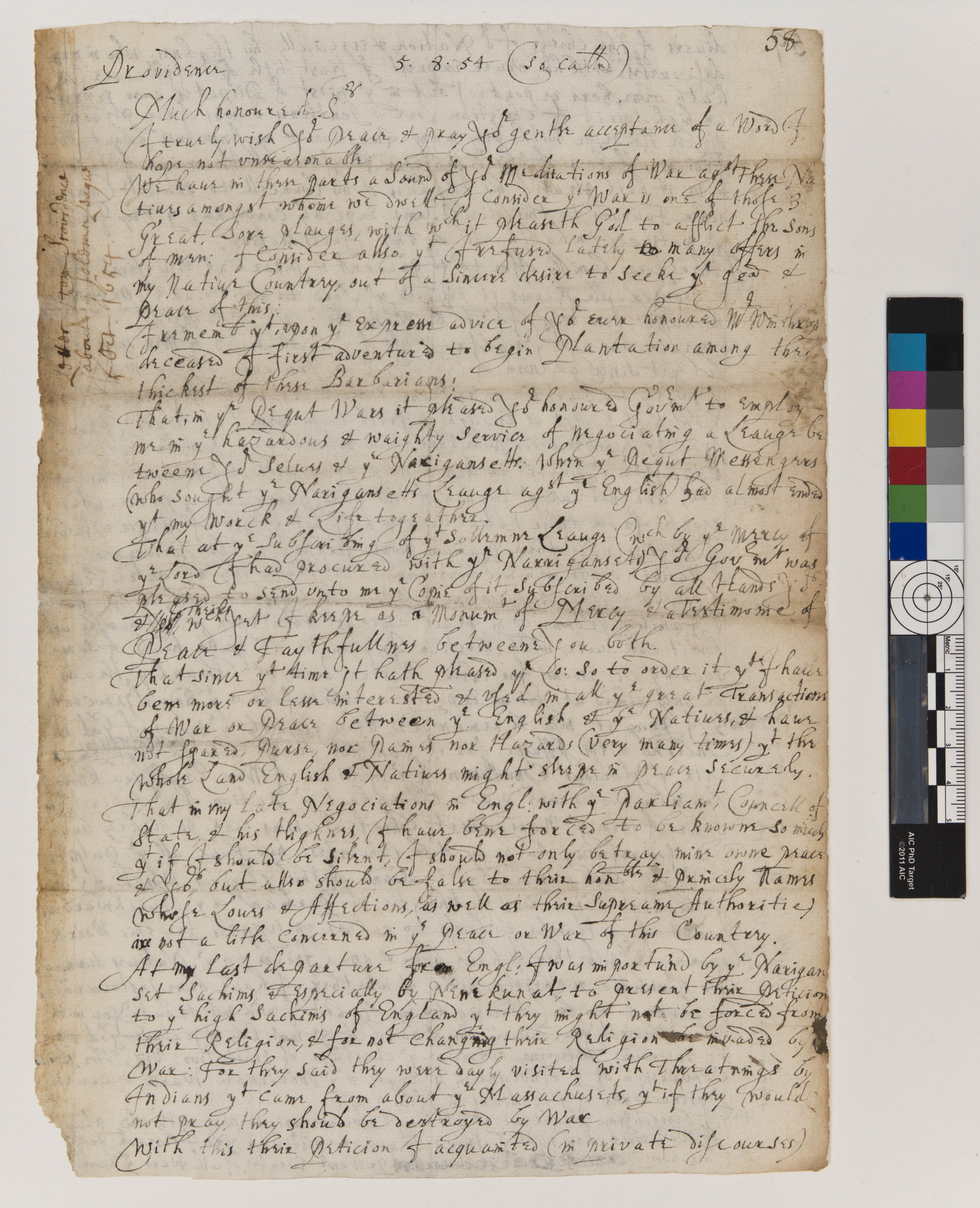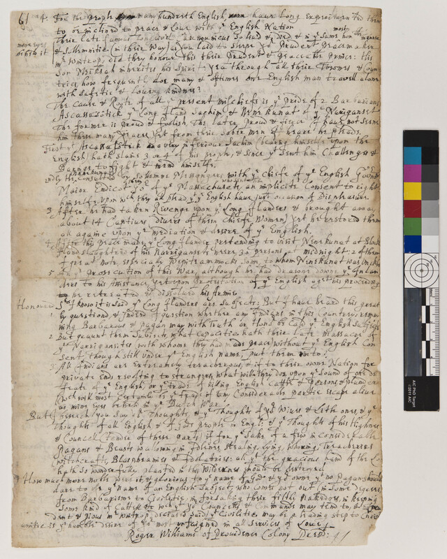 Letter of Roger Williams to the General Court of Massachusetts