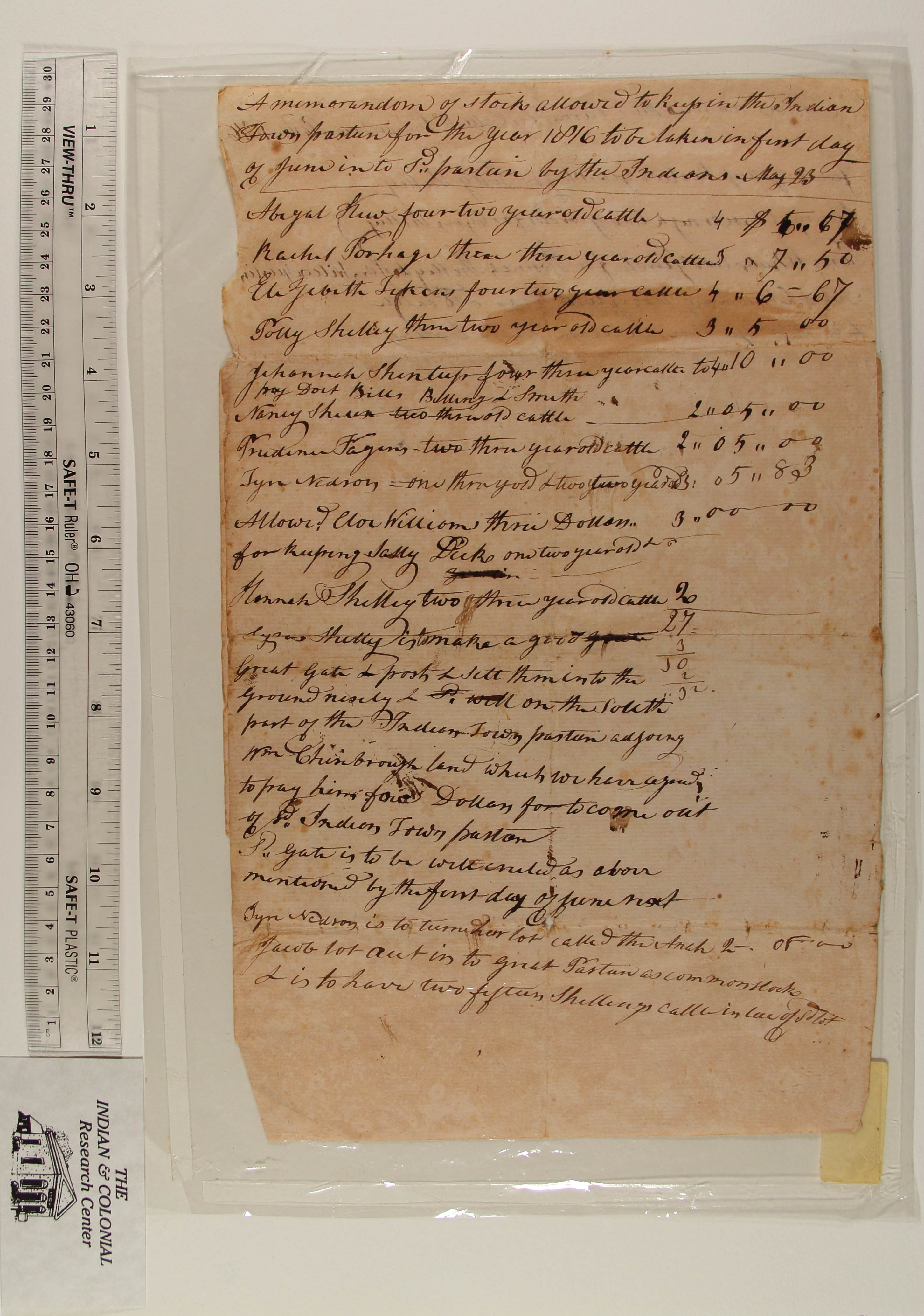 Memorandum of Stock Allowed in Indian Town Pasture