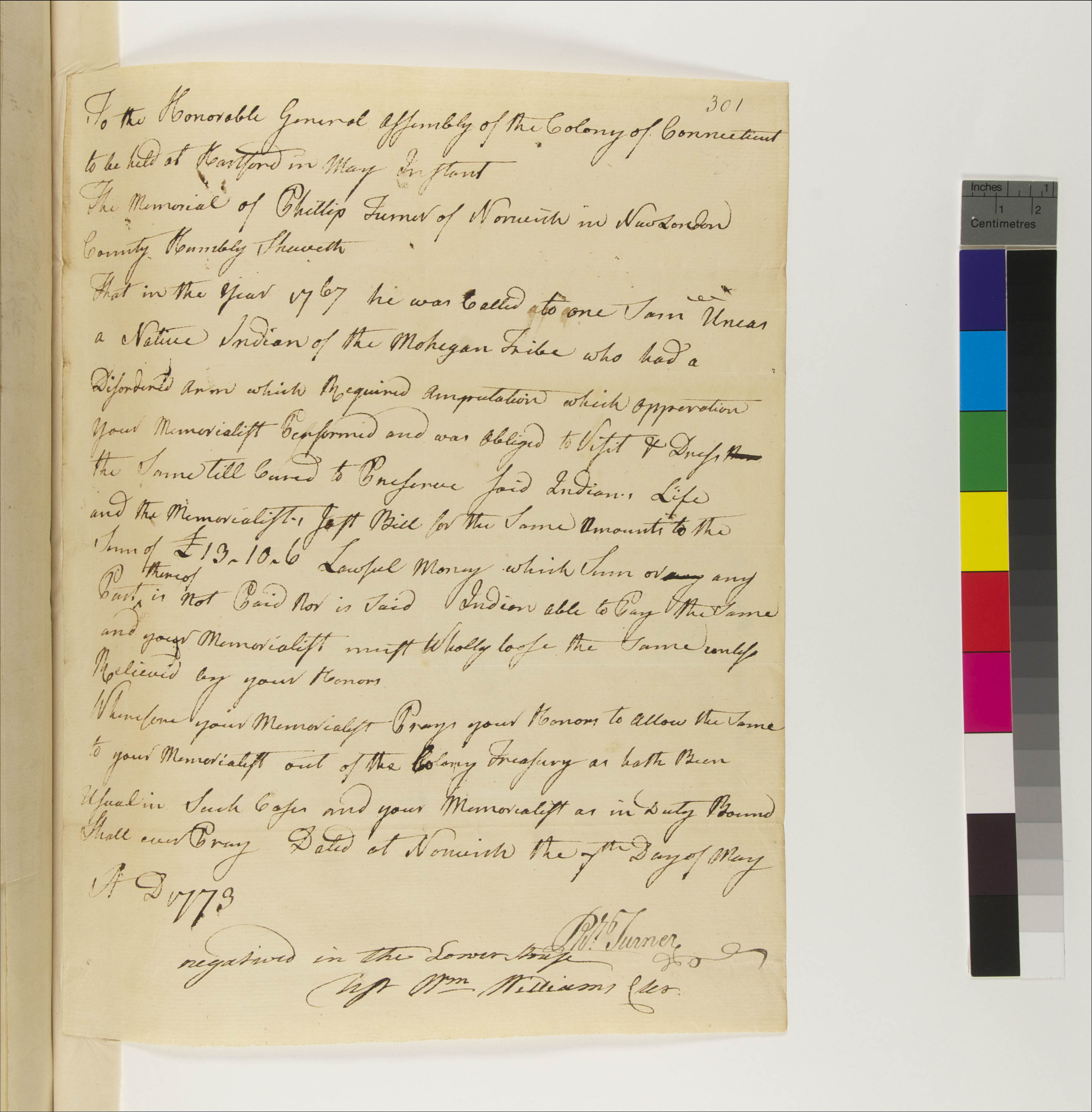Accounting/Finance -- Debt; Accounting/Finance -- Goods & Services; Disease/Illness -- Accident; Disease/Illness -- Care; Government -- Colonial -- Colony of Connecticut -- General Assembly; Government -- Tribal -- Mohegan; Law -- Legislative Process -- Petitions -- Rejected; Relations -- Colonial Affairs; Relations -- Tribal Affairs; Repository -- Connecticut State Library; Tribes/Communities -- Mohegan; YIPP -- Colony of Connecticut Collection, 1603-1783