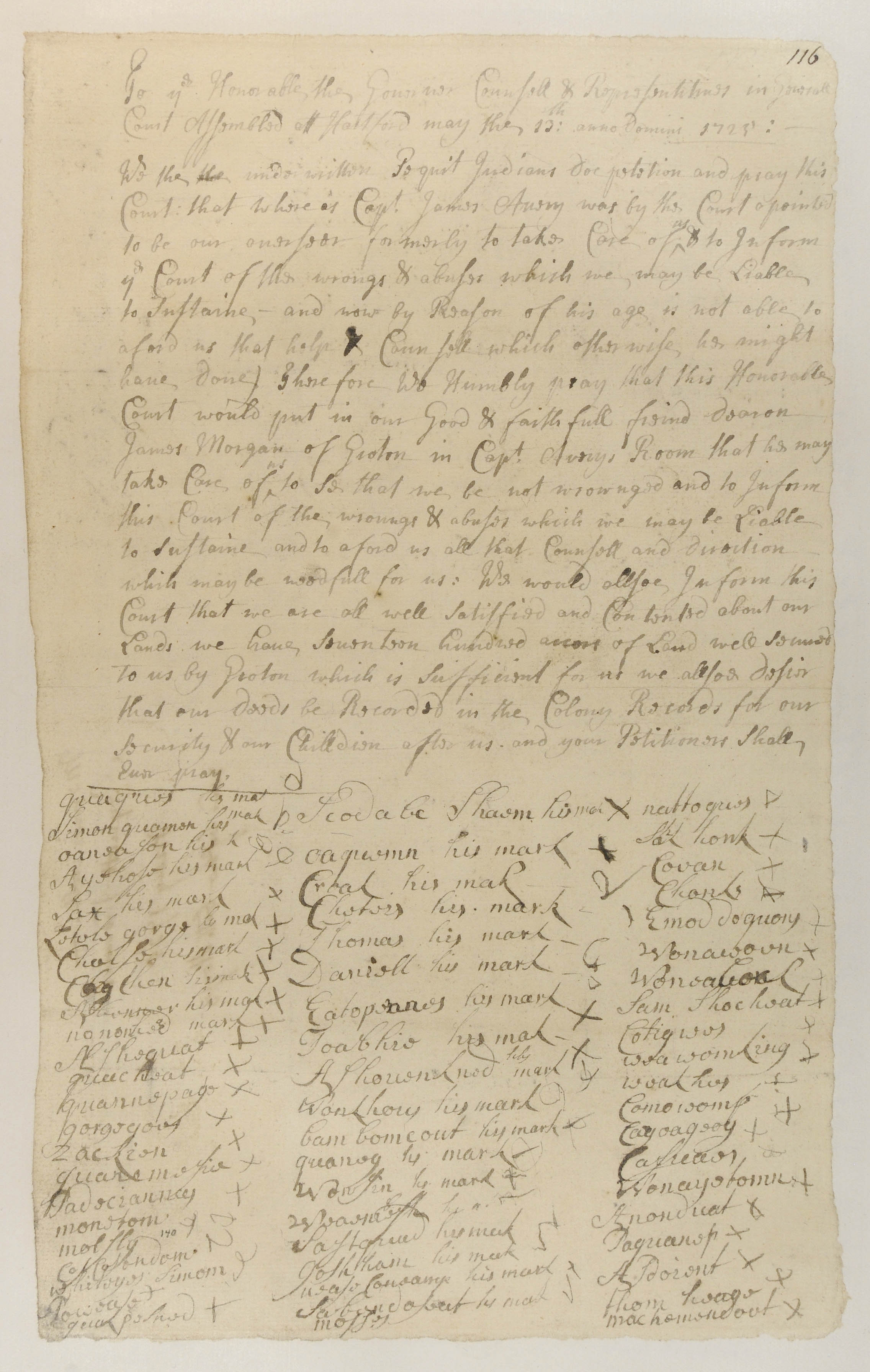 Government -- Colonial -- Colony of Connecticut -- Guardians/Overseers; Government -- Colonial -- Colony of Connecticut; Government -- Tribal -- Pequot -- Western -- Sachems/Sagamores -- Scadoab (1694-possibly c. 1725); Land -- Description -- Boundaries; Land -- Reservation/Reserve -- Pequot -- Western; Law -- Legislative Process -- Petitions; Relations -- Colonial Affairs; Relations -- Tribal Affairs; Tribes/Communities -- Pequot -- Western