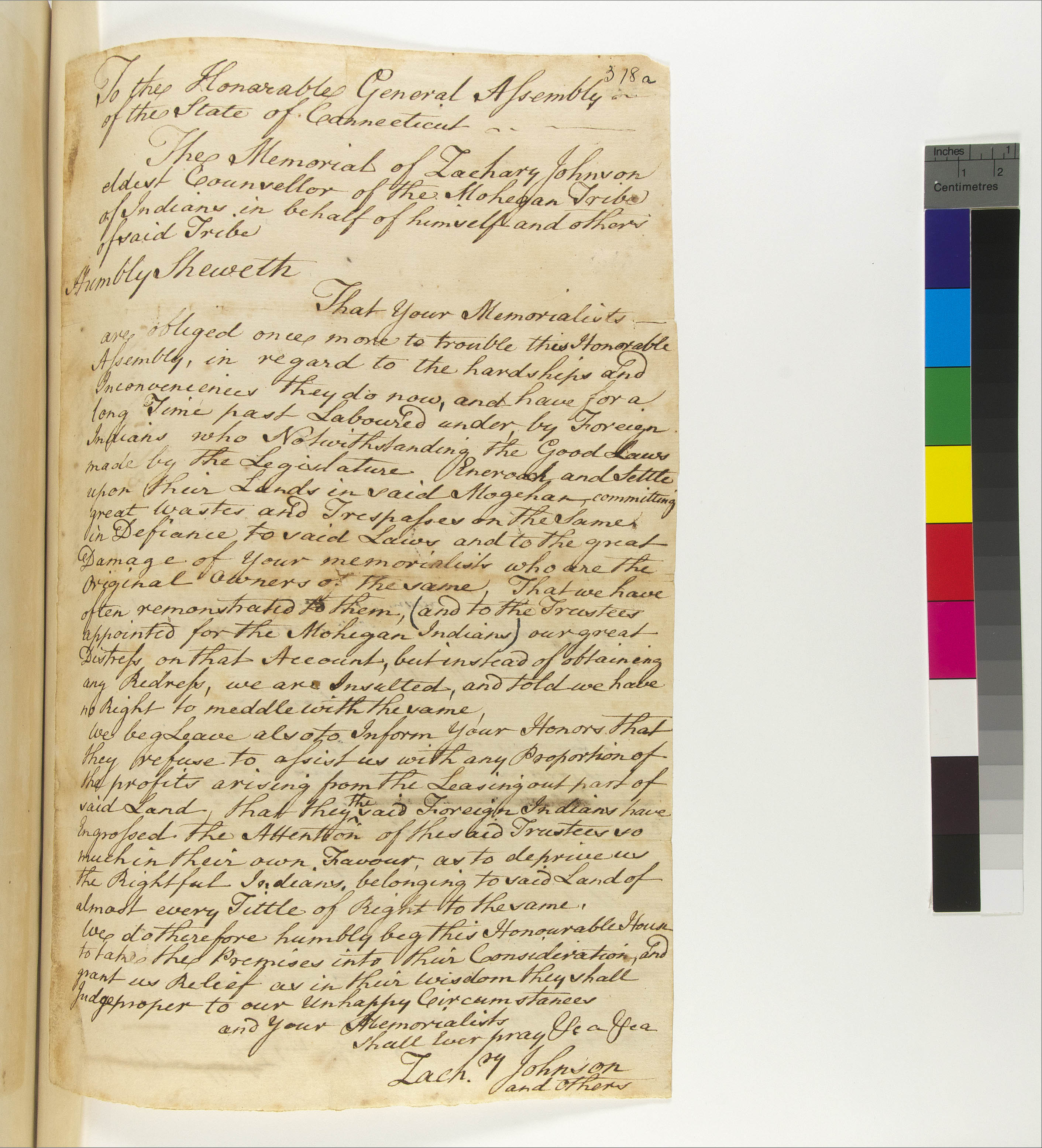 Culture -- Disputes; Government -- Colonial -- Colony of Connecticut -- General Assembly; Government -- Colonial -- Colony of Connecticut -- Guardians/Overseers; Government -- Tribal -- Mohegan -- Mason Faction -- Sachems/Sagamores -- John Uncas (1736-c.1769); Government -- Tribal -- Mohegan -- Pro-Government Faction -- Councilors -- Zachary Johnson (c.1769-1783+); Land -- Complaints -- Encroachment; Land -- Rental; Land -- Reservation/Reserve -- Mohegan; Law -- Legislative Process -- Appointment; Law -- Legislative Process -- Petitions -- Accepted; Relations -- Colonial Affairs; Relations -- Tribal Affairs; Repository -- Connecticut State Library; Tribes/Communities -- Mohegan; Tribes/Communities -- Unknown/Foreign; YIPP -- Colony of Connecticut Collection, 1603-1783
