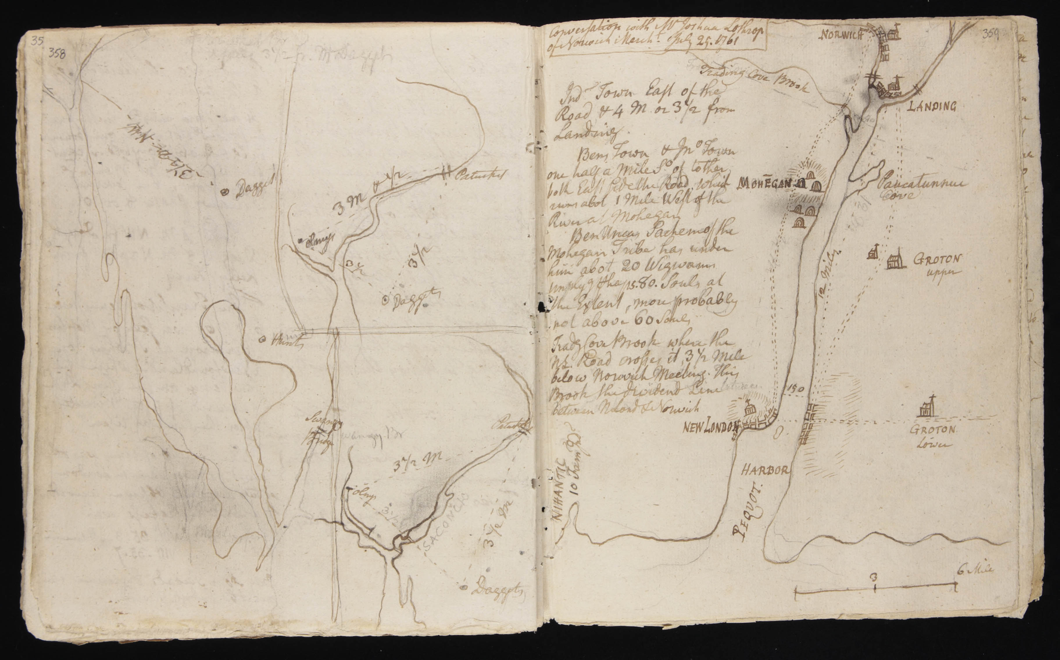 Notes from a Conversation with Joshua Lothrop and Map of Thames River in Connecticut