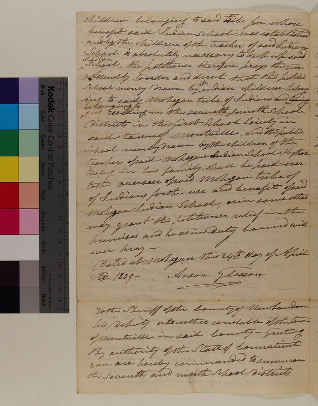 Petition of Anson Gleason, Minister and Schoolmaster to the Mohegan