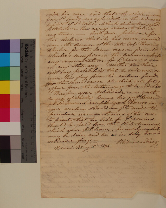 Petition of Doctor Philemon Tracy Seeking Compensation for Services Provided a Member of the Eastern Pequot Tribe