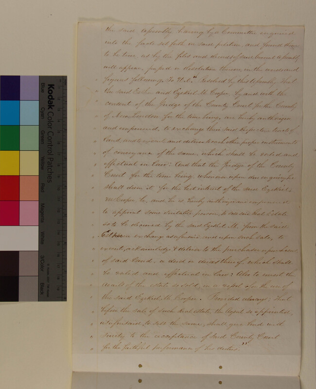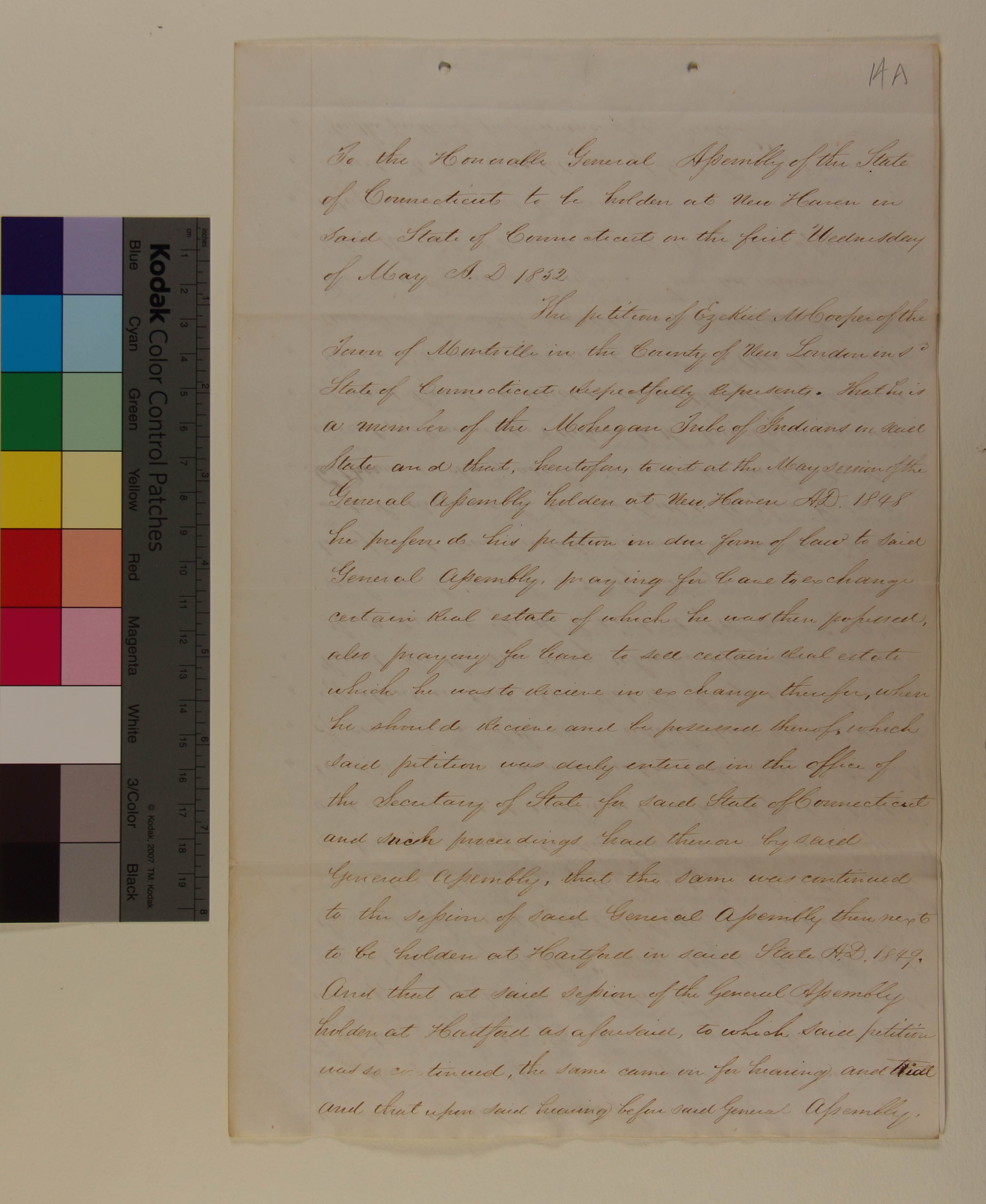 - Petition of Ezekiel M. Cooper, a Mohegan Indian, for Permission to Sell certain Estate
