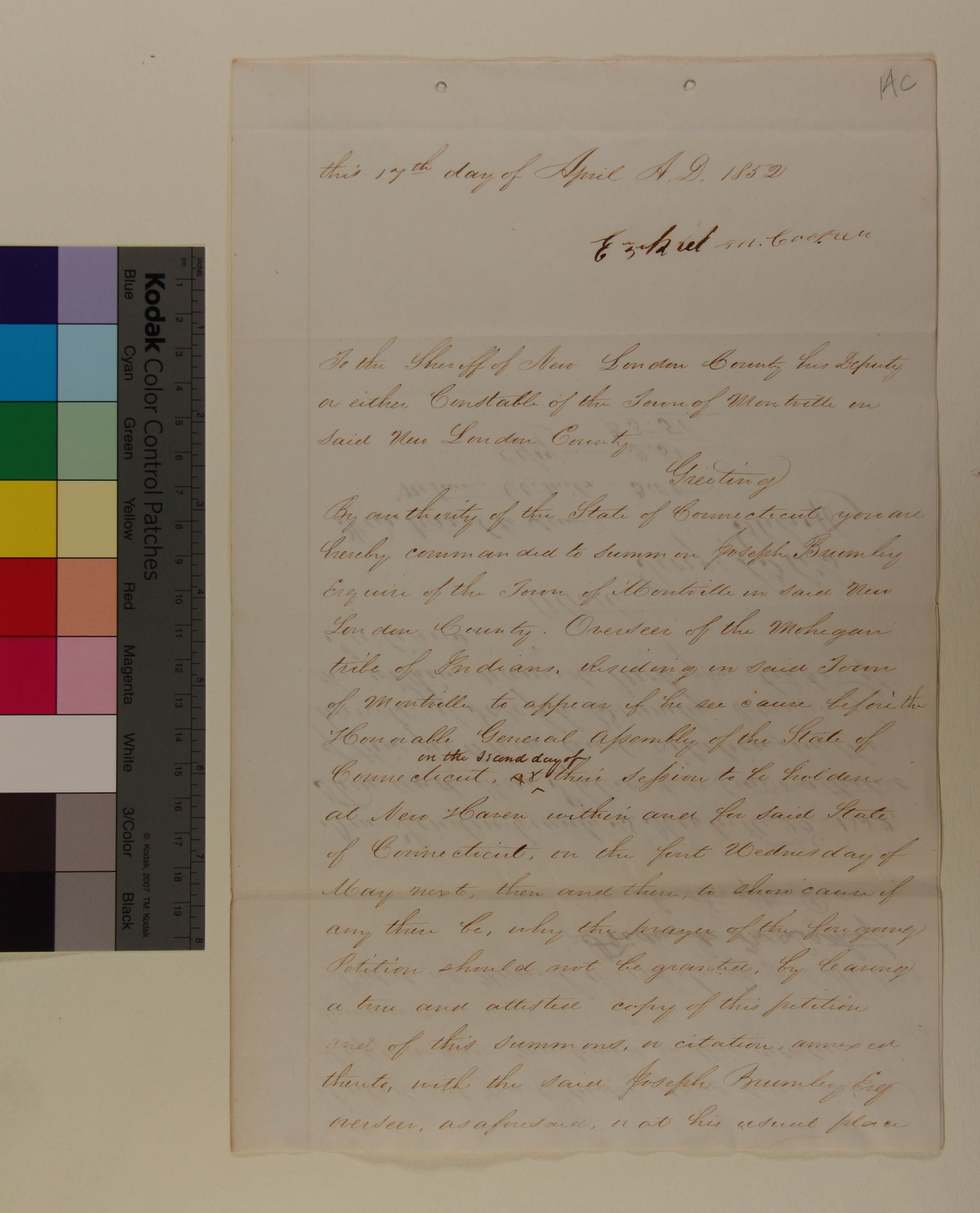 Petition of Ezekiel M. Cooper, a Mohegan Indian, for Permission to Sell certain Estate