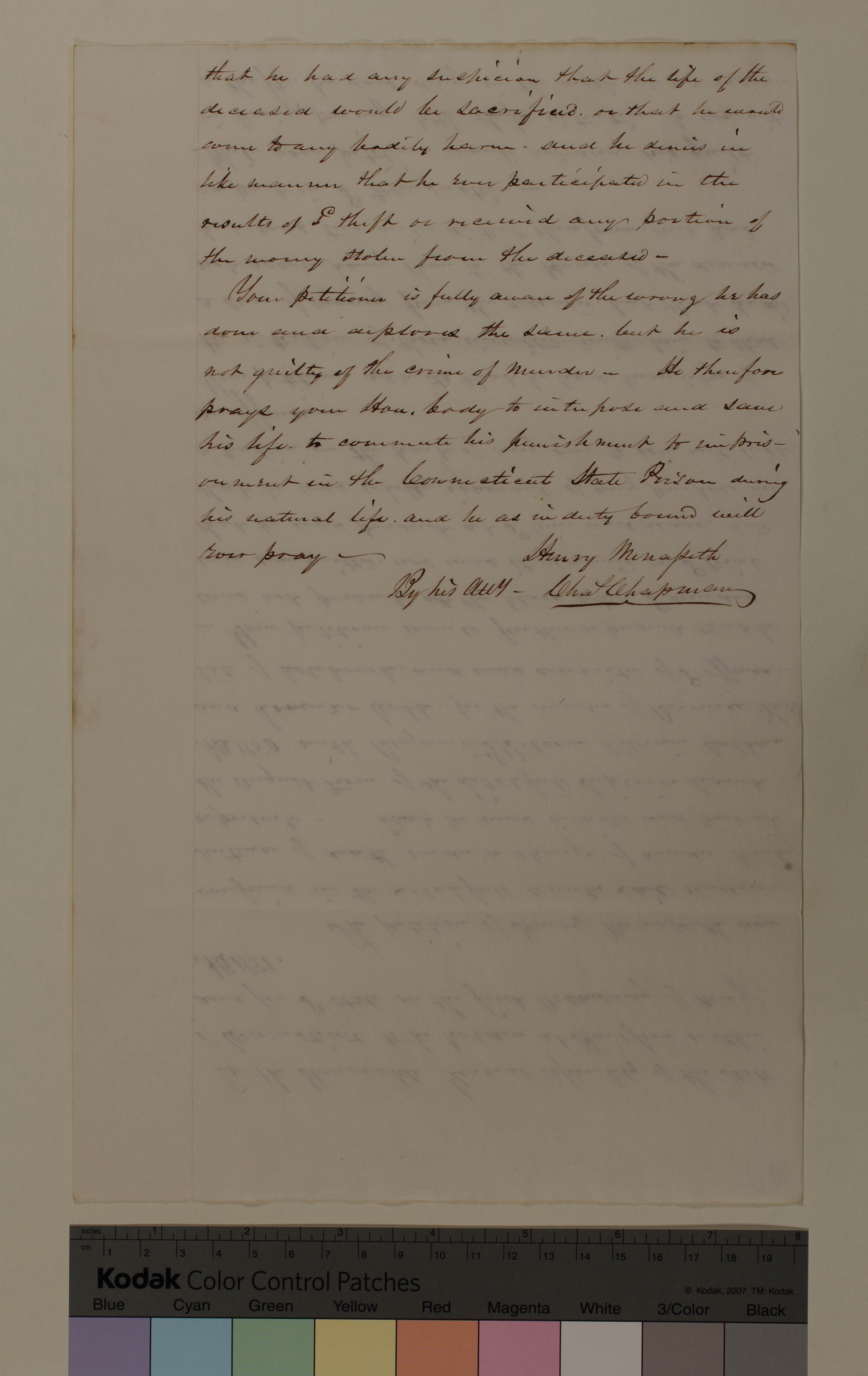 Petition of Henry Menasseth for Commutation of Punishment