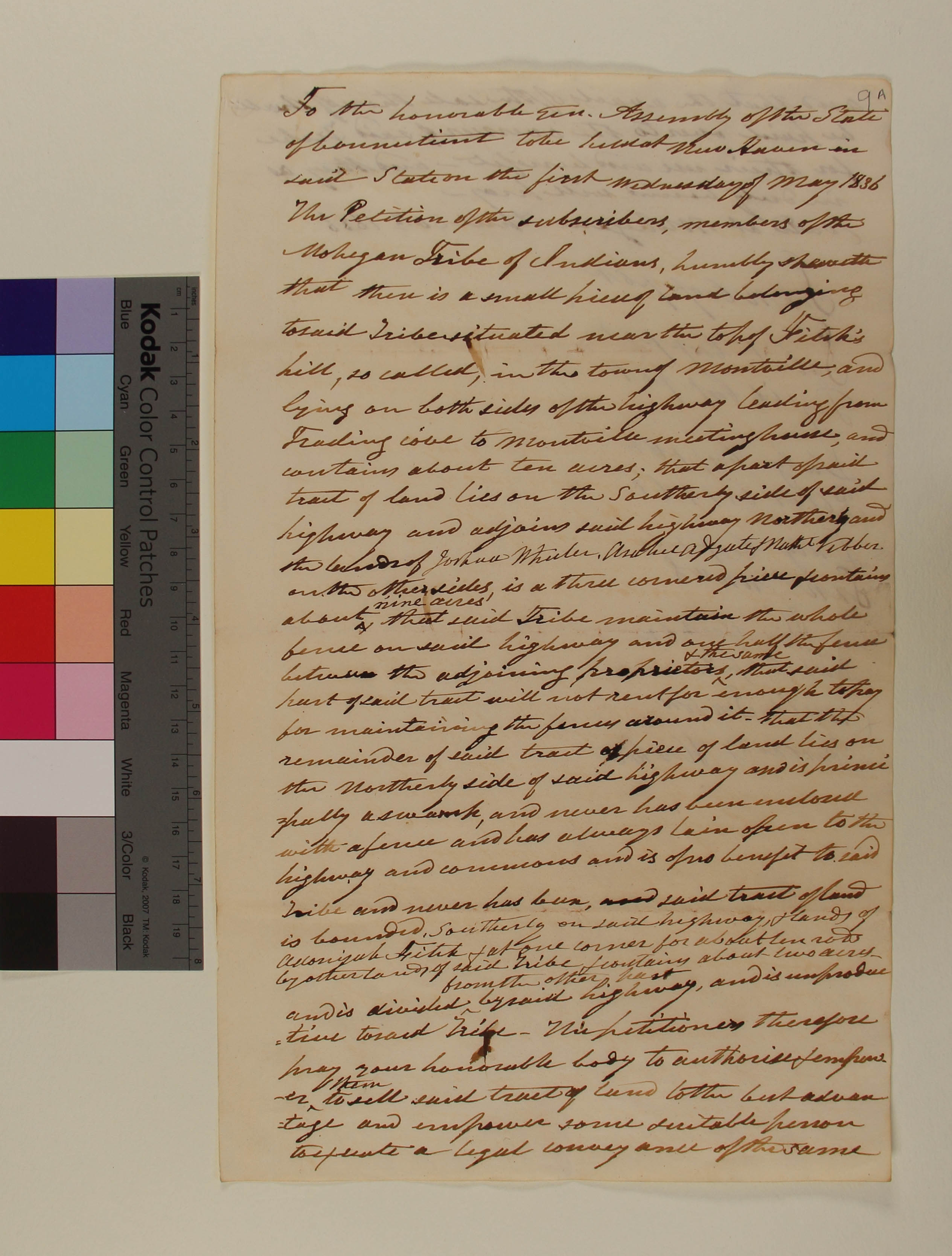 Government -- State -- Connecticut -- General Assembly; Land -- Conveyances -- Sale -- Request; Land -- Conveyances; Land -- Rental; Land -- Reservation/Reserve -- Mohegan; Land -- Use -- Improvement -- Fences; Law -- Legislative Process -- Petitions -- Rejected; YIPP -- State of Connecticut Collection, 1784-1869