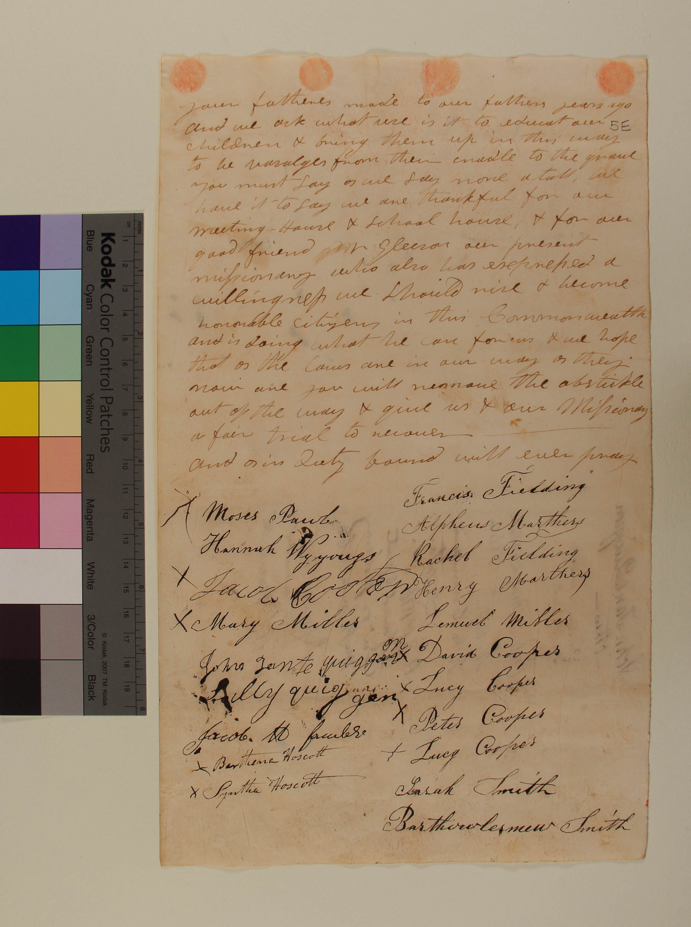 Cooper, David (son of John jr. and hannah), 1781- (Author); Cooper, Jacob (Child in 1769) (Author); Cooper, Lucy (child in 1769) (Author); Cooper, Peter G (Author); Fielding, Francis (Author); Fielding, Rachel (Author); Fowler, Jacob H (Author); Matthews, Alpheus (Author); Matthews, Henry (Author); Miller, Lemuel O (Author); Miller, Mary (Author); Paul, Moses (Author); Poquiantup, Luca (Author); Smith, Bartholomew Tantaquidgeon (Author); Tantaquidgeon, Bethany (Author); Tantaquidgeon, John (Child in 1769) (Author); Tantaquidgeon, John, Jr. (Child in 1769) (Author); Tecomwas, Cynthia, 1778- (Author); Wyyougs, Hannah (Author)