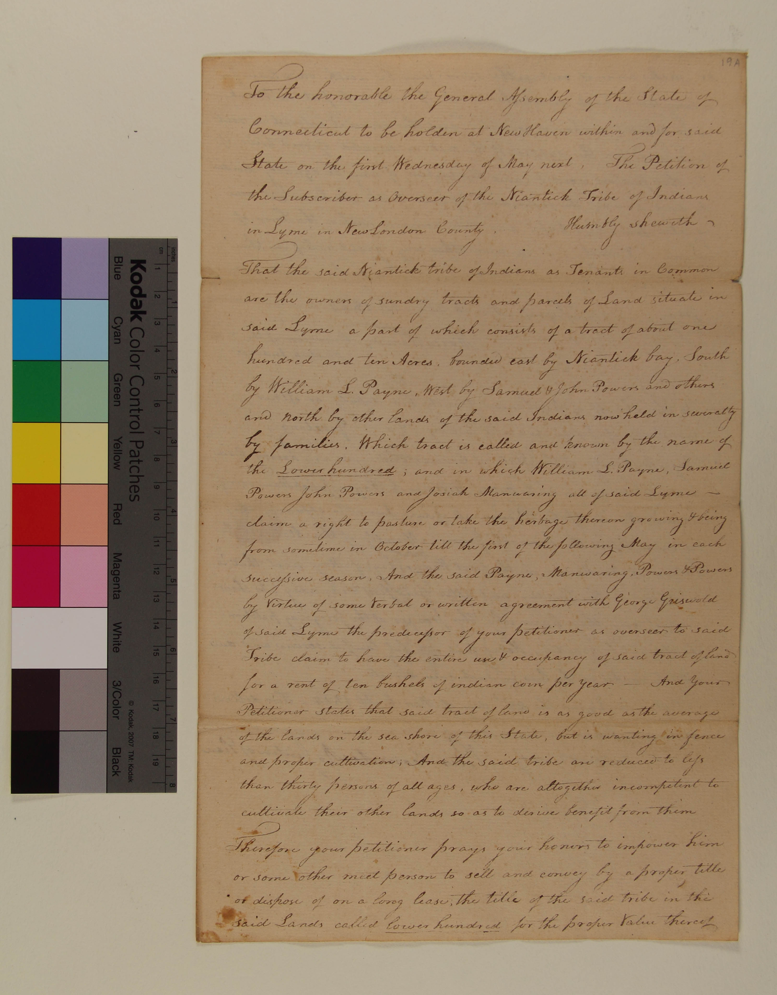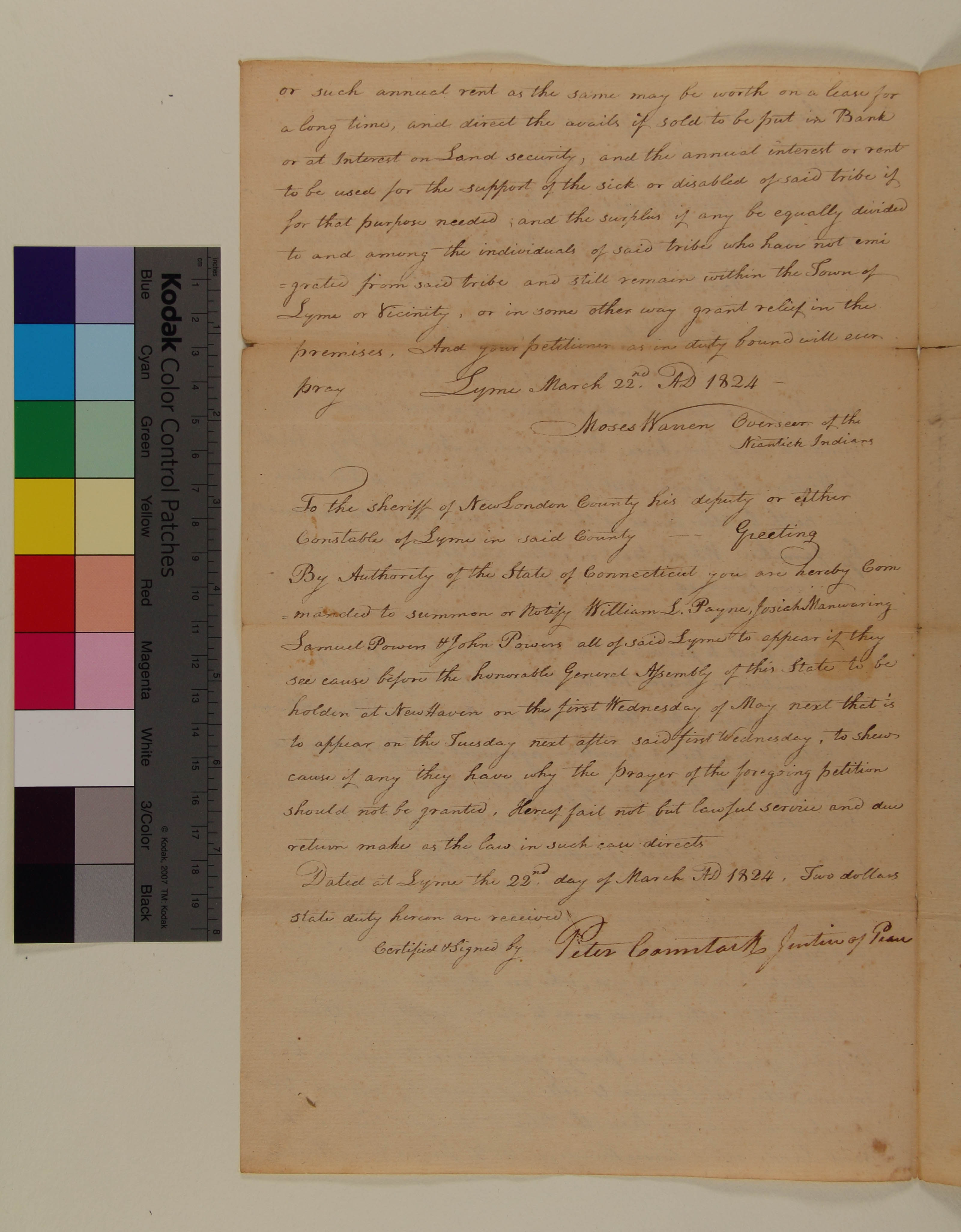 Petition of Moses Warren, Overseer of the Niantic Tribe of Indians