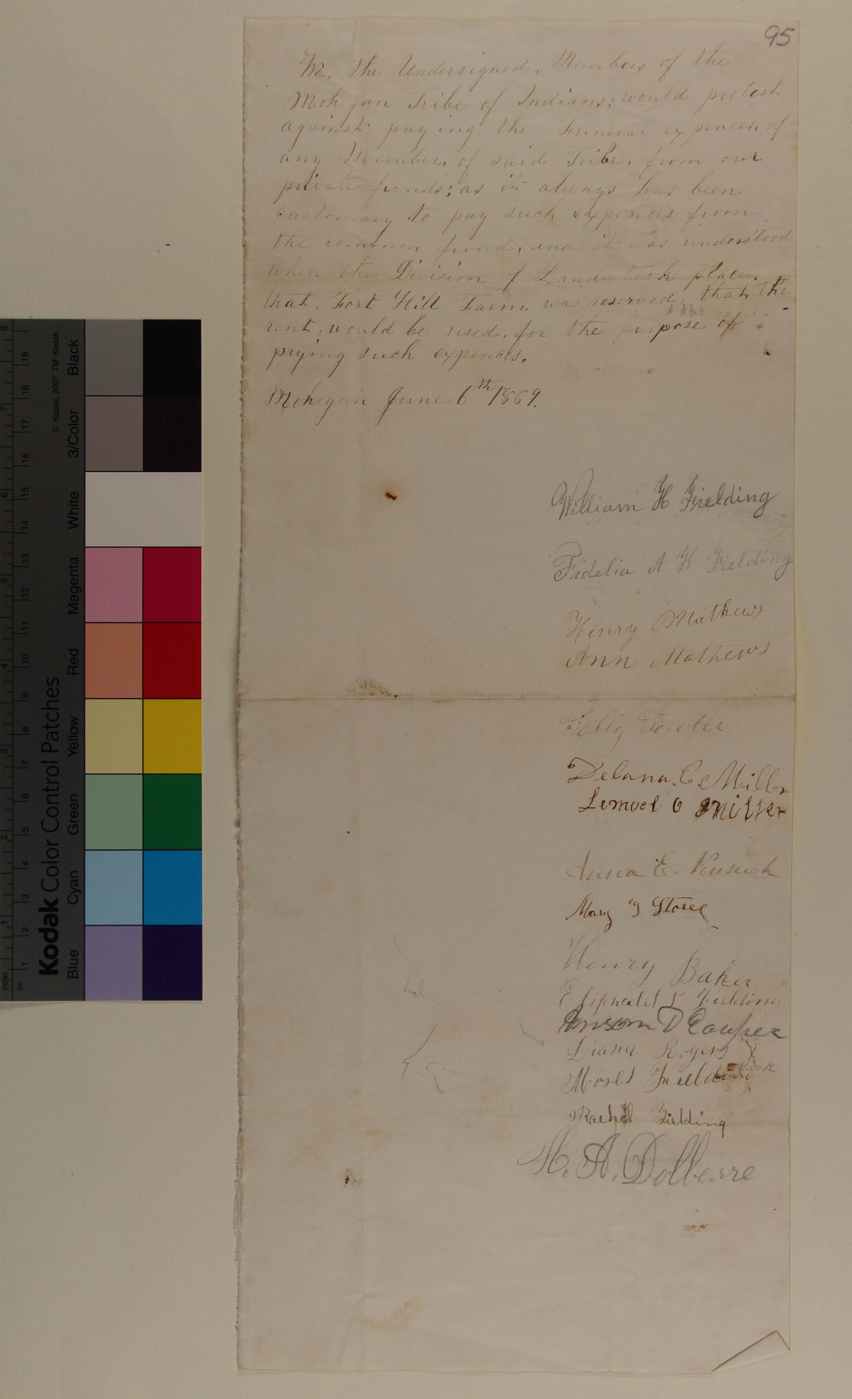Protest of the Mohegan Tribe against Paying Funeral Expenses from Private Funds