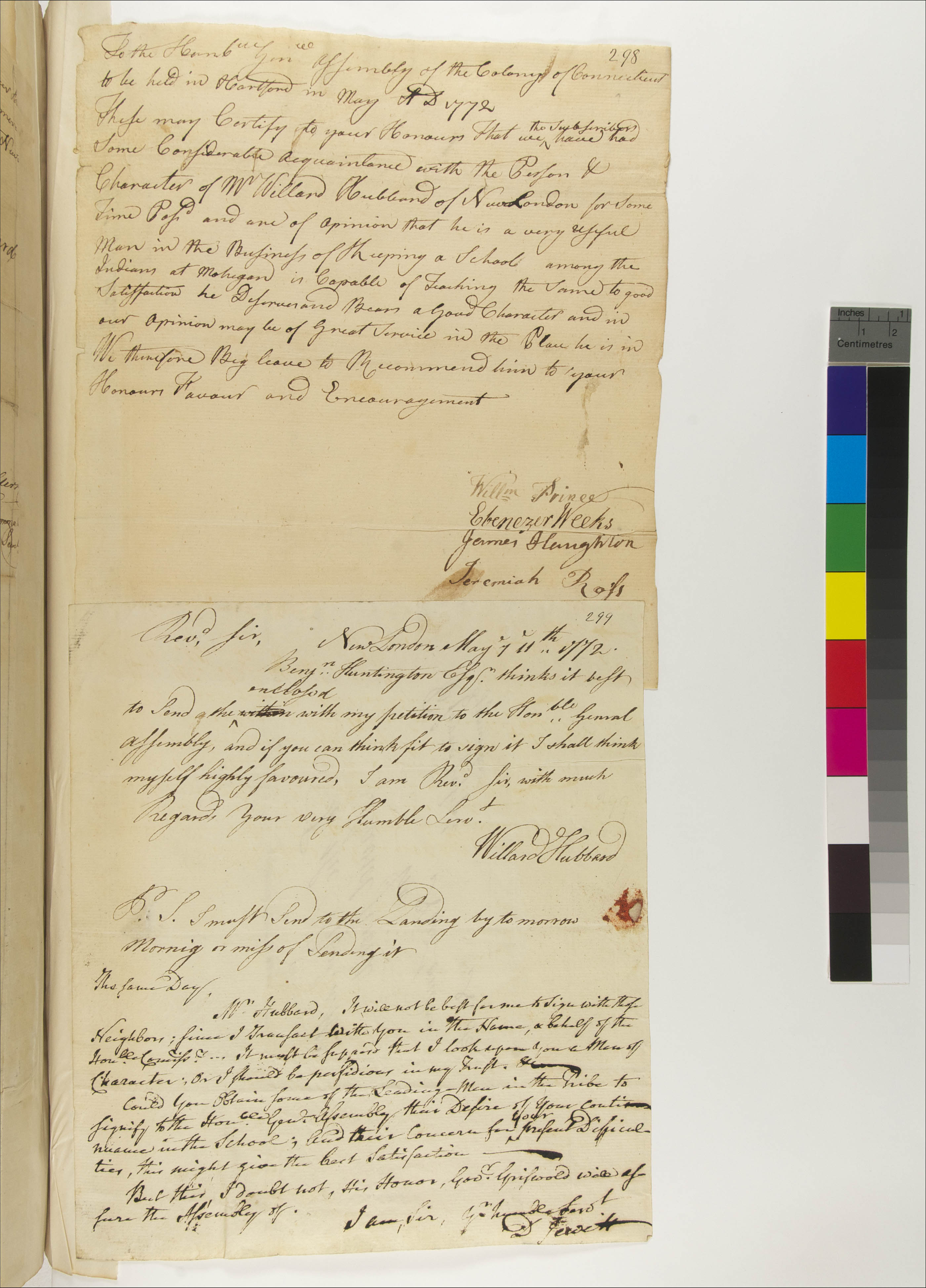 Education/Schools -- Missions -- Connecticut -- Mohegan:: (Montville); Education/Schools -- Teachers; Employment -- Education; Government -- Colonial -- Colony of Connecticut -- General Assembly; Land -- Reservation/Reserve -- Mohegan; Personal Characteristics -- Character; Relations -- Colonial Affairs; Relations -- Tribal Affairs; Repository -- Connecticut State Library; Tribes/Communities -- Mohegan; YIPP -- Colony of Connecticut Collection, 1603-1783