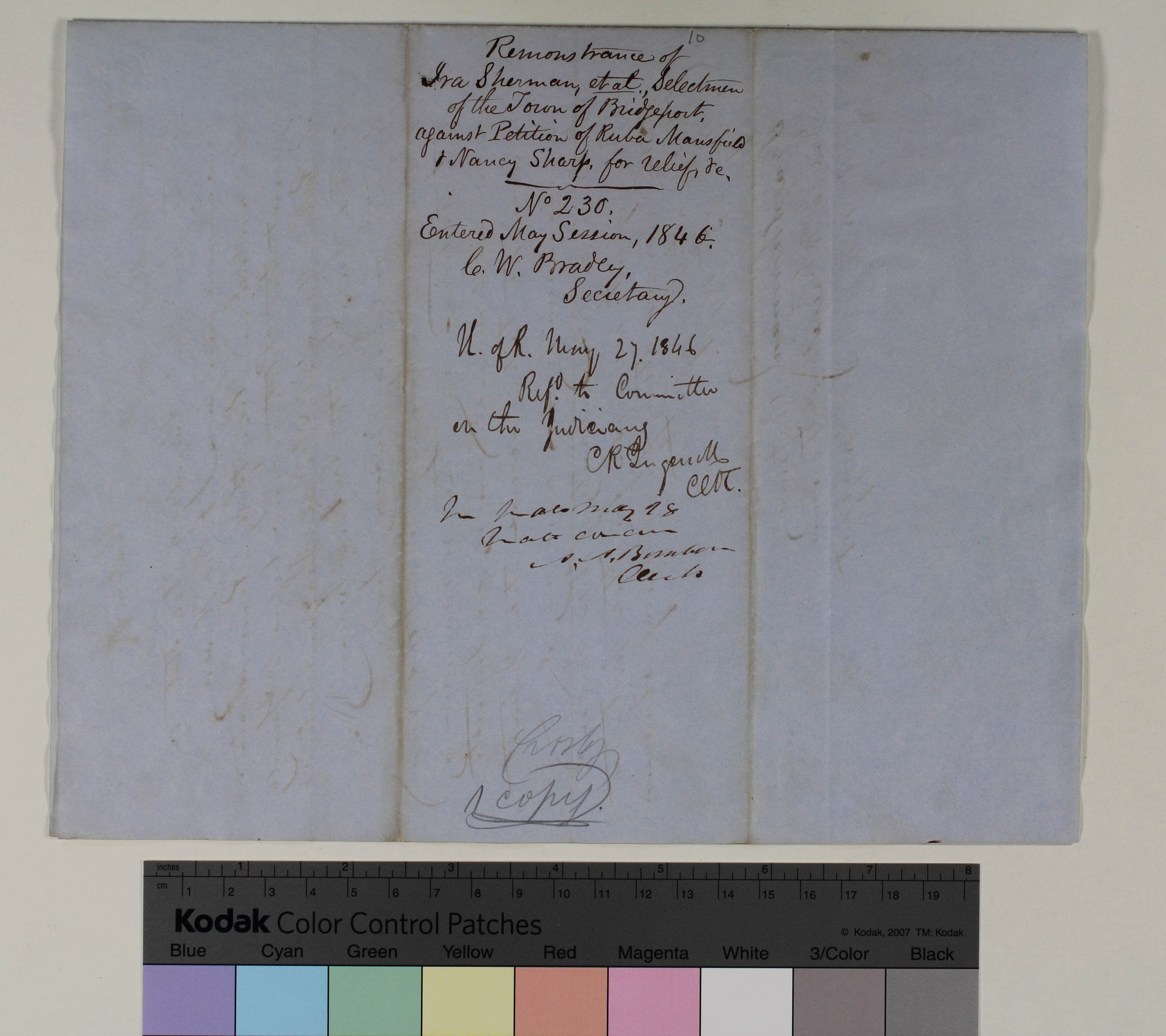 Remonstrance of Ira Sherman, et al. and Selectmen of the Town of Bridgeport against Petition of Ruba Mansfield and Nancy Sharp for Relief