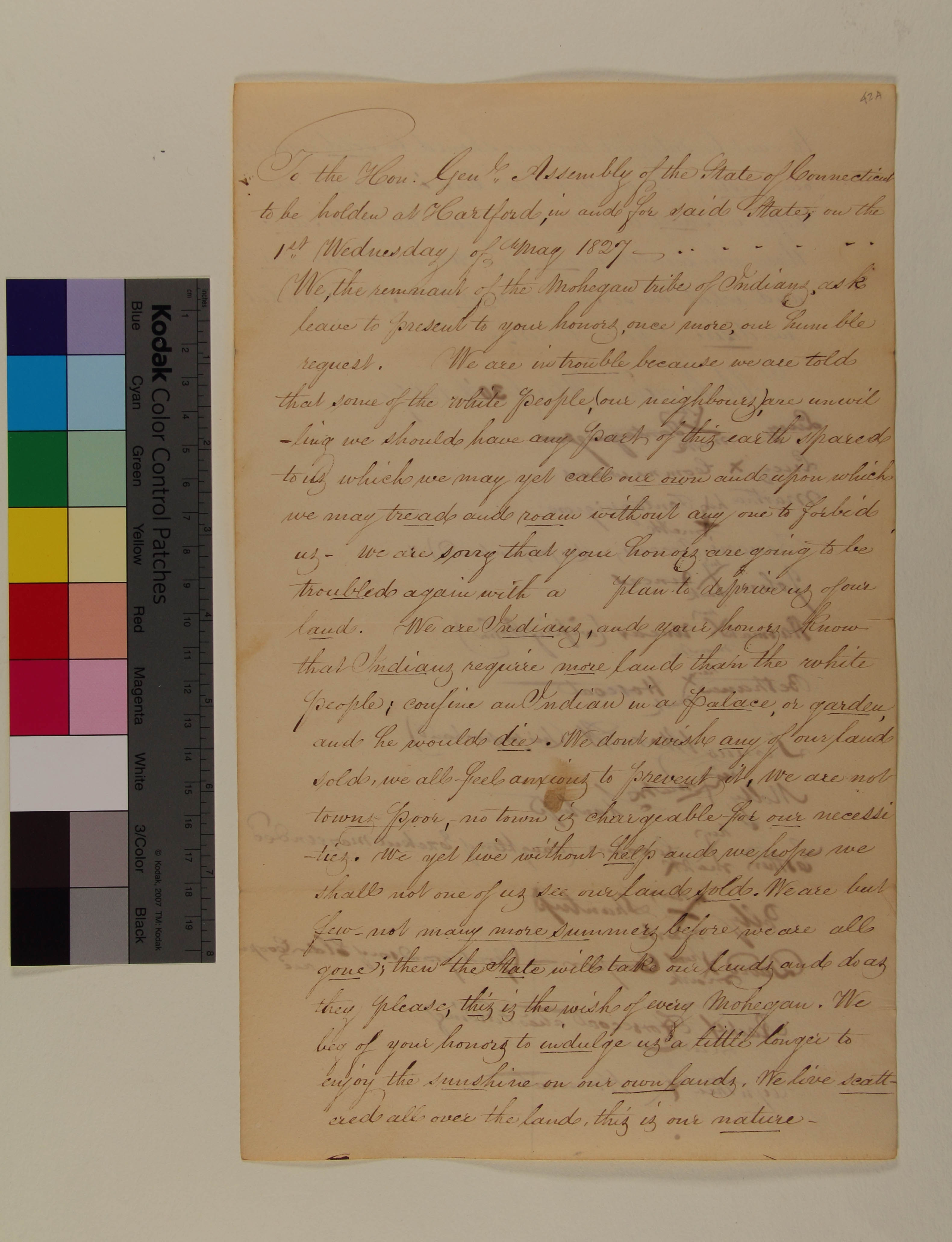 Remonstrance of the Mohegan Indians to the Connecticut General Assembly