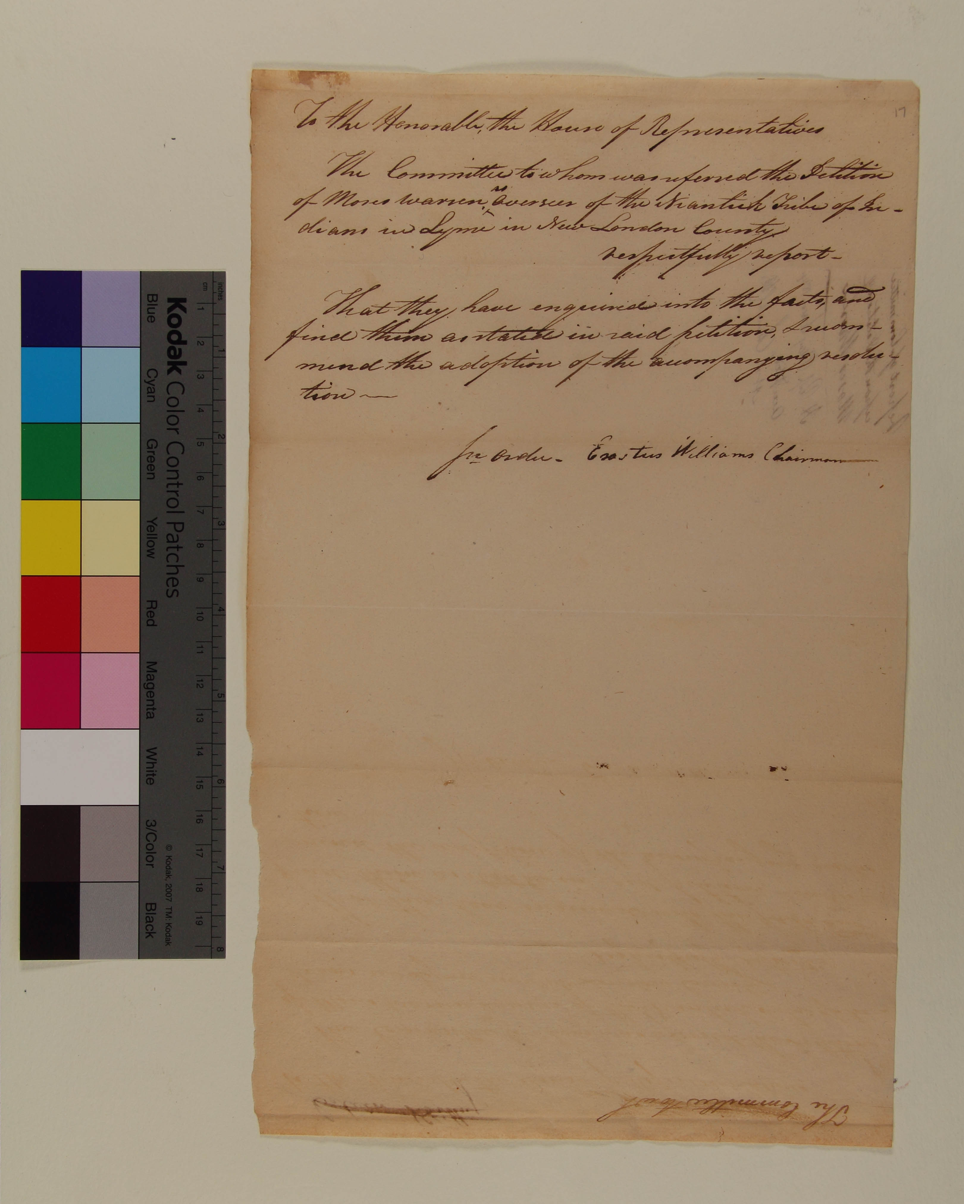 Report of Committee upon the Petition of Moses Warren, Overseer of the Niantic Tribe of Indians