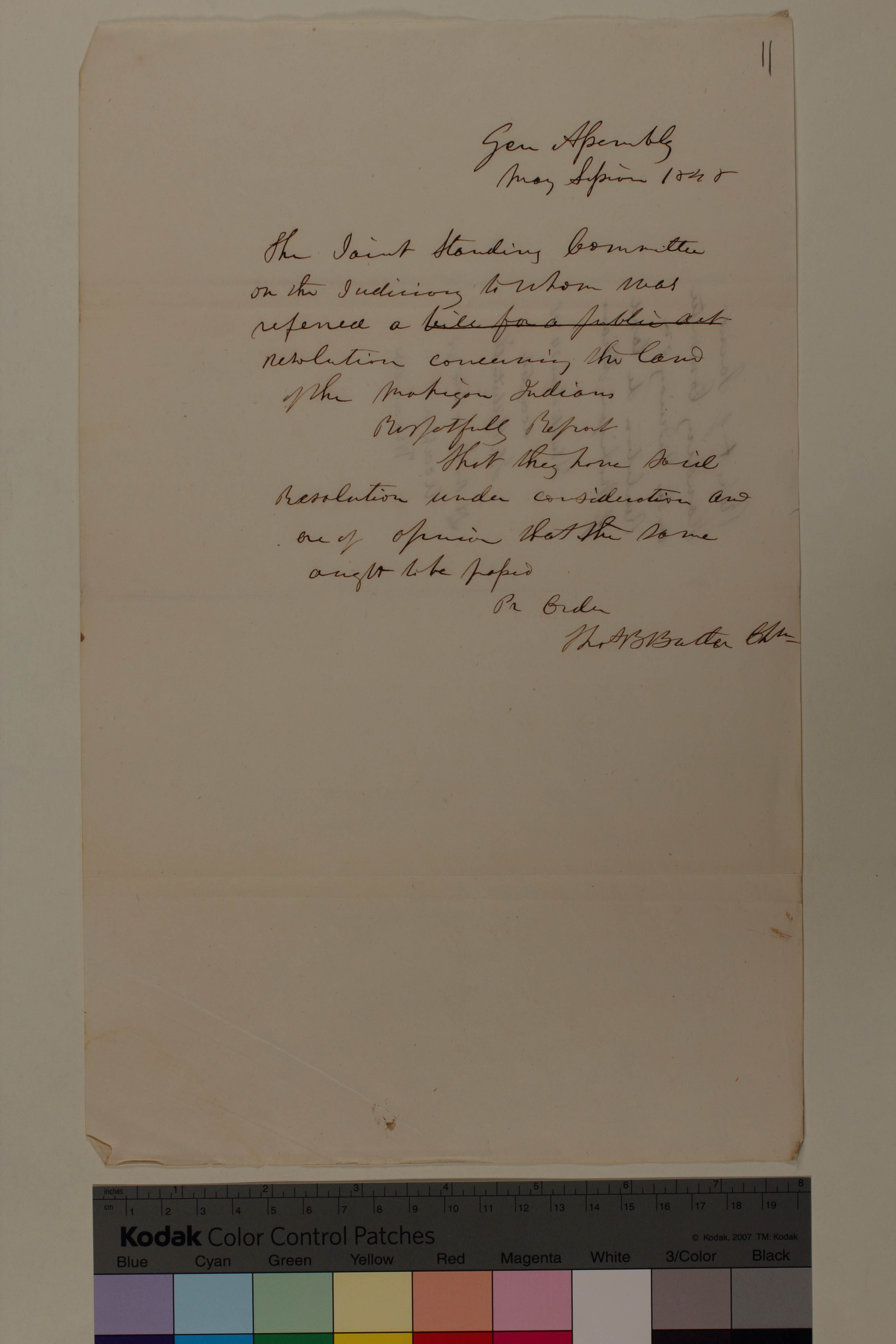 Report of Joint Standing Committee on the Mohegan Indian's Resolution regarding Land