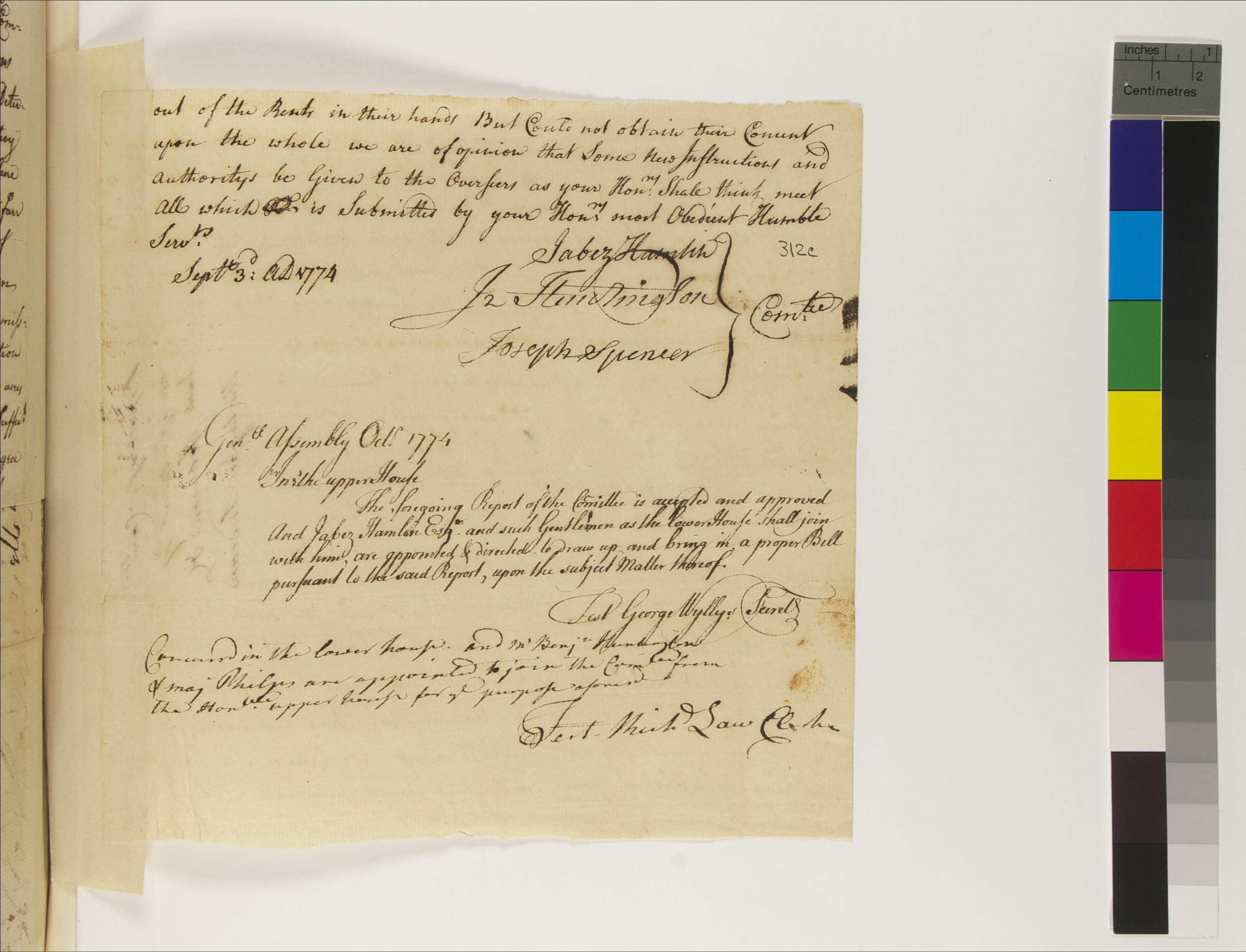 Choychoy, Simon (Mentioned within document); Connecticut General Assembly (Recipient); Hamlin, Jabez (Author); Haughton, James (Mentioned within document); Huntington, Benjamin (Mentioned within document); Huntington, Jabez (Author); Johnson, Zachary, 1687-1787 (Mentioned within document); Law, Richard, 1732-1806 (Mentioned within document); Phelps, Charles (Mentioned within document); Spencer, Joseph (Author); Wyllys, George, 1710-1796 (Topic)