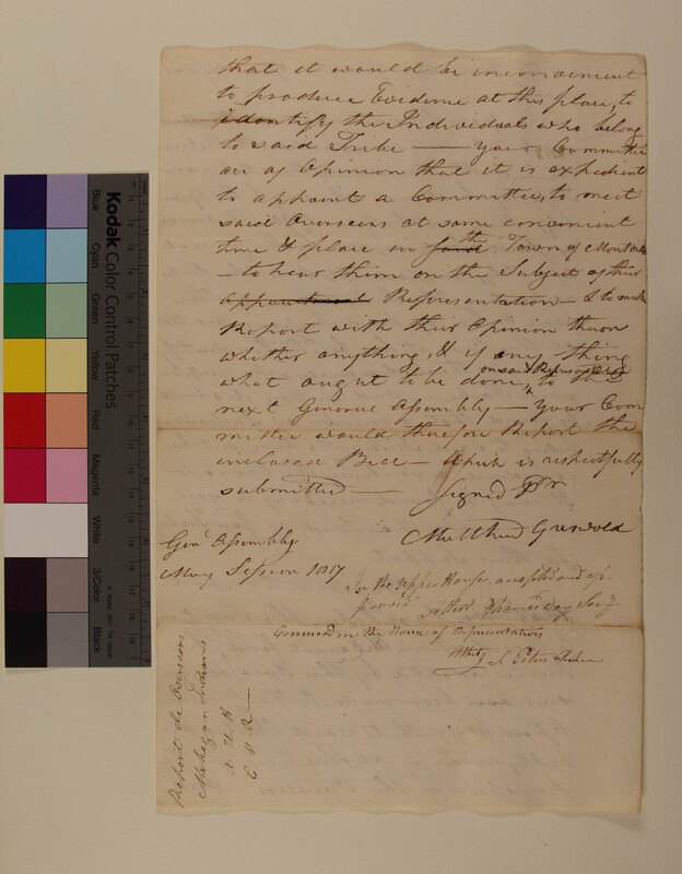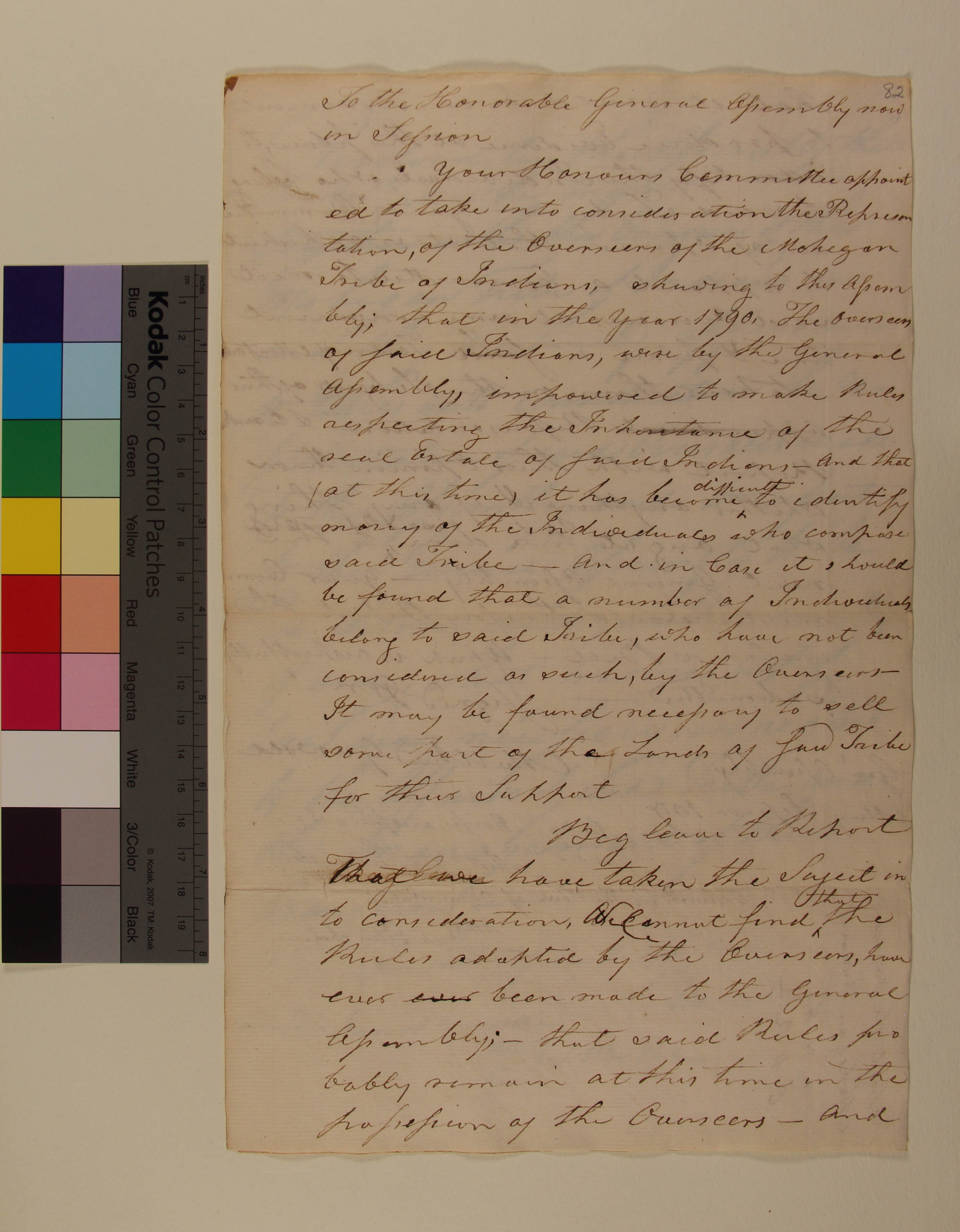 Report of the Committee on the Petition of the Overseers of the Mohegan Tribe concerning Difficulties Associated with the Identity of the Tribe