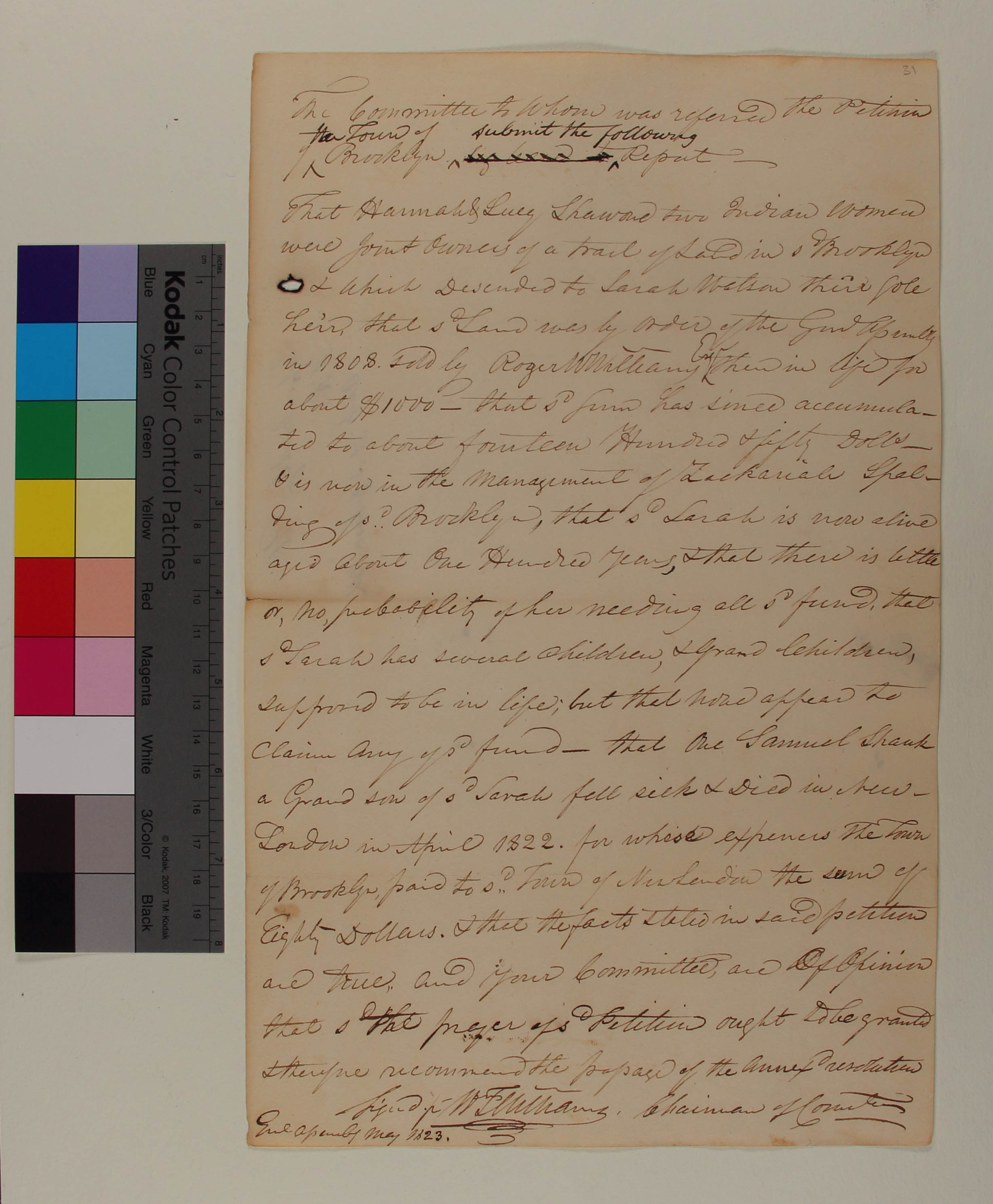 Report of the Committee regarding the Petition of the Inhabitants of the Town of Brooklyn, Connecticut