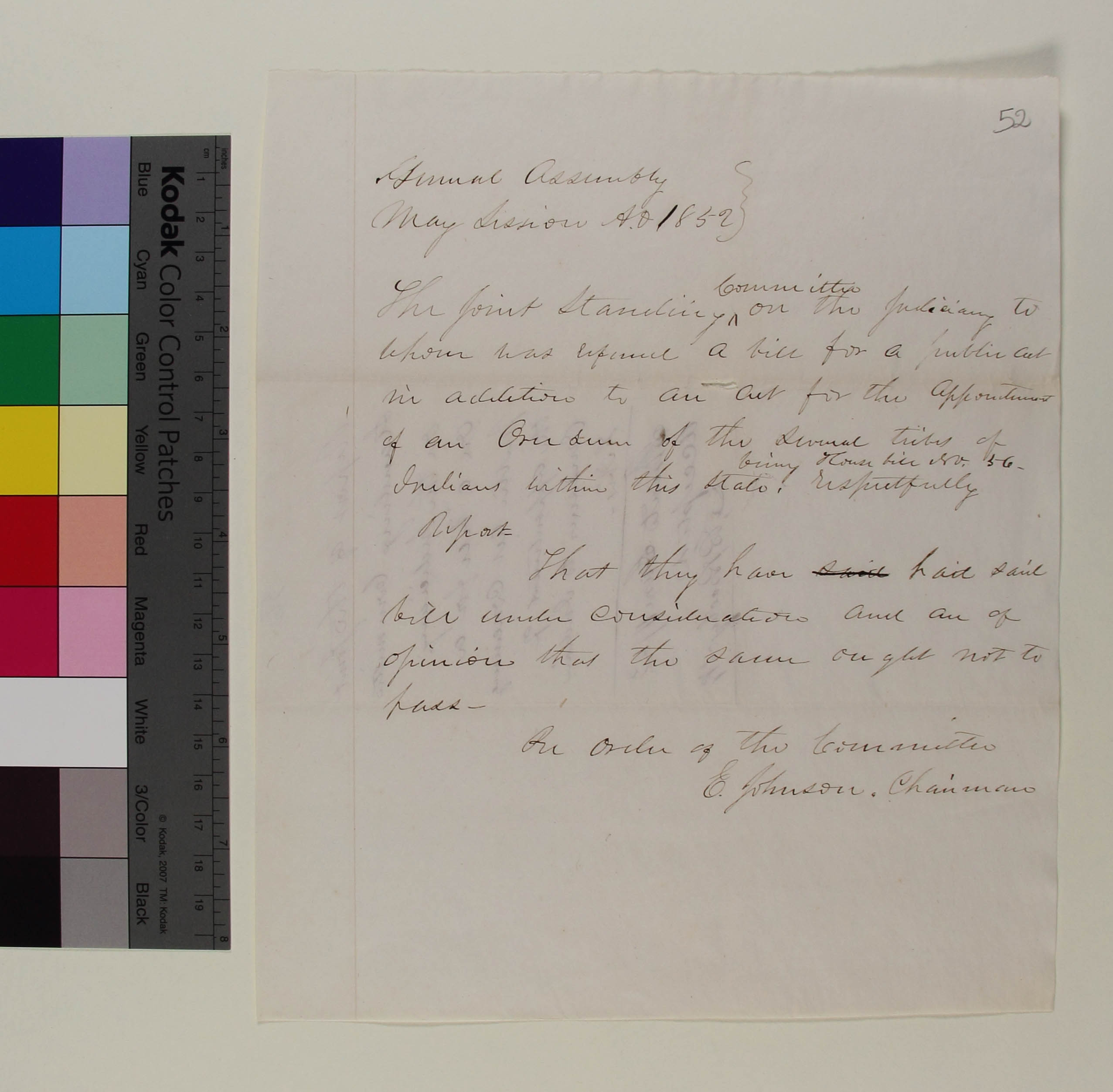 Report of the Joint Standing Committee on the Judiciary on a Bill for Public Act concerning the Appointment of Overseers to Indian Tribes
