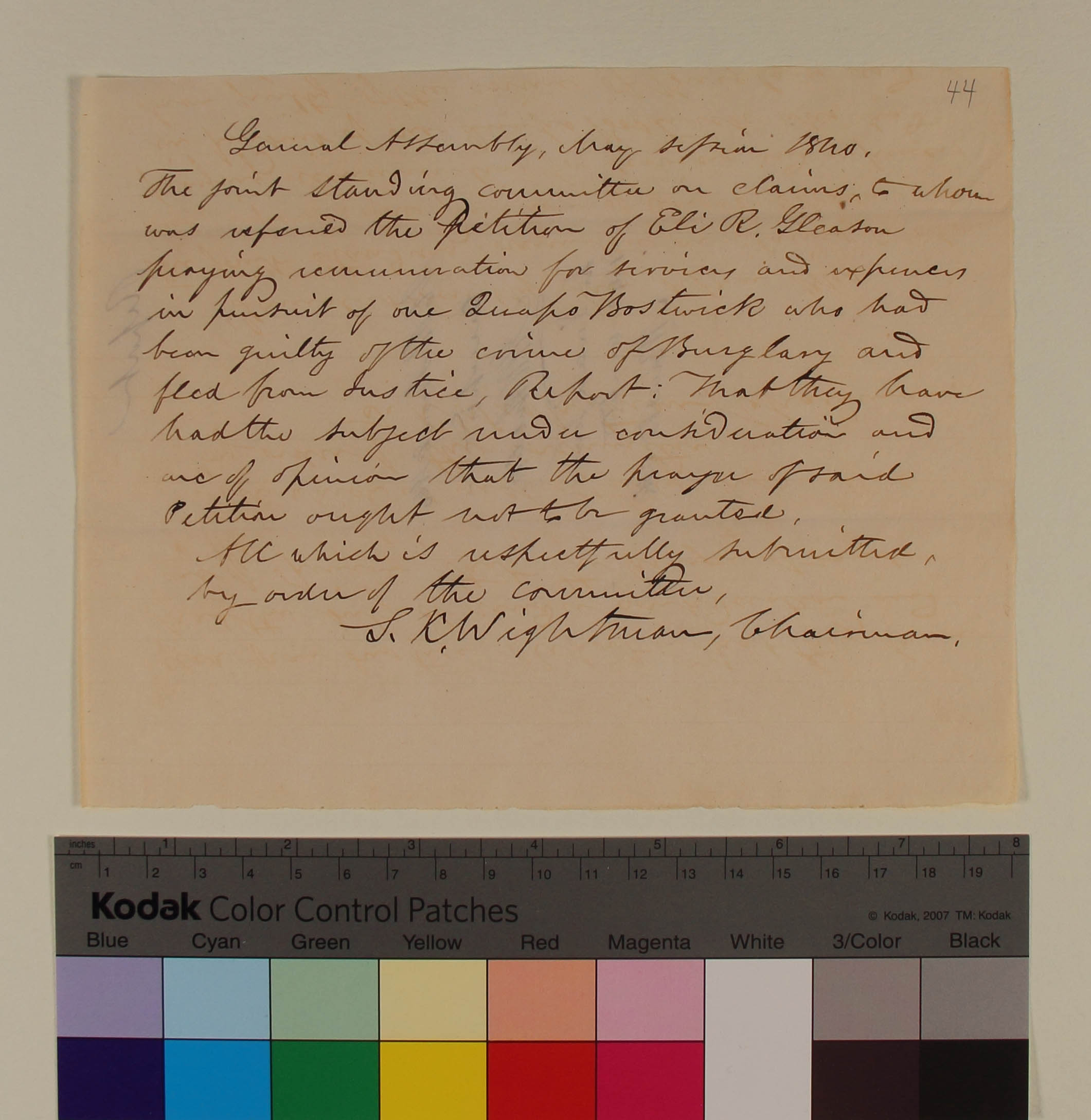 Report of the Joint Standing Committee on the Petition of Eli Gleason