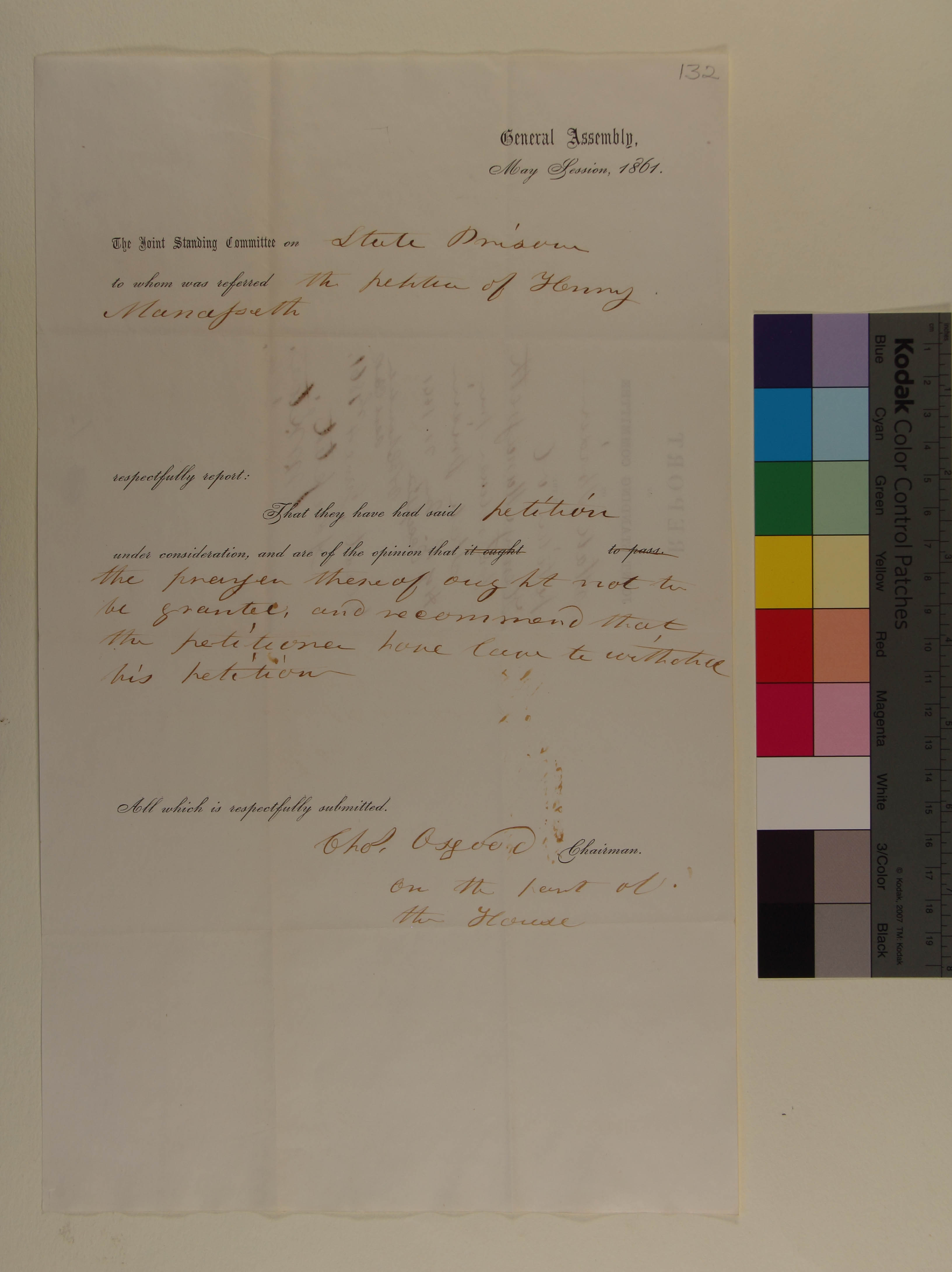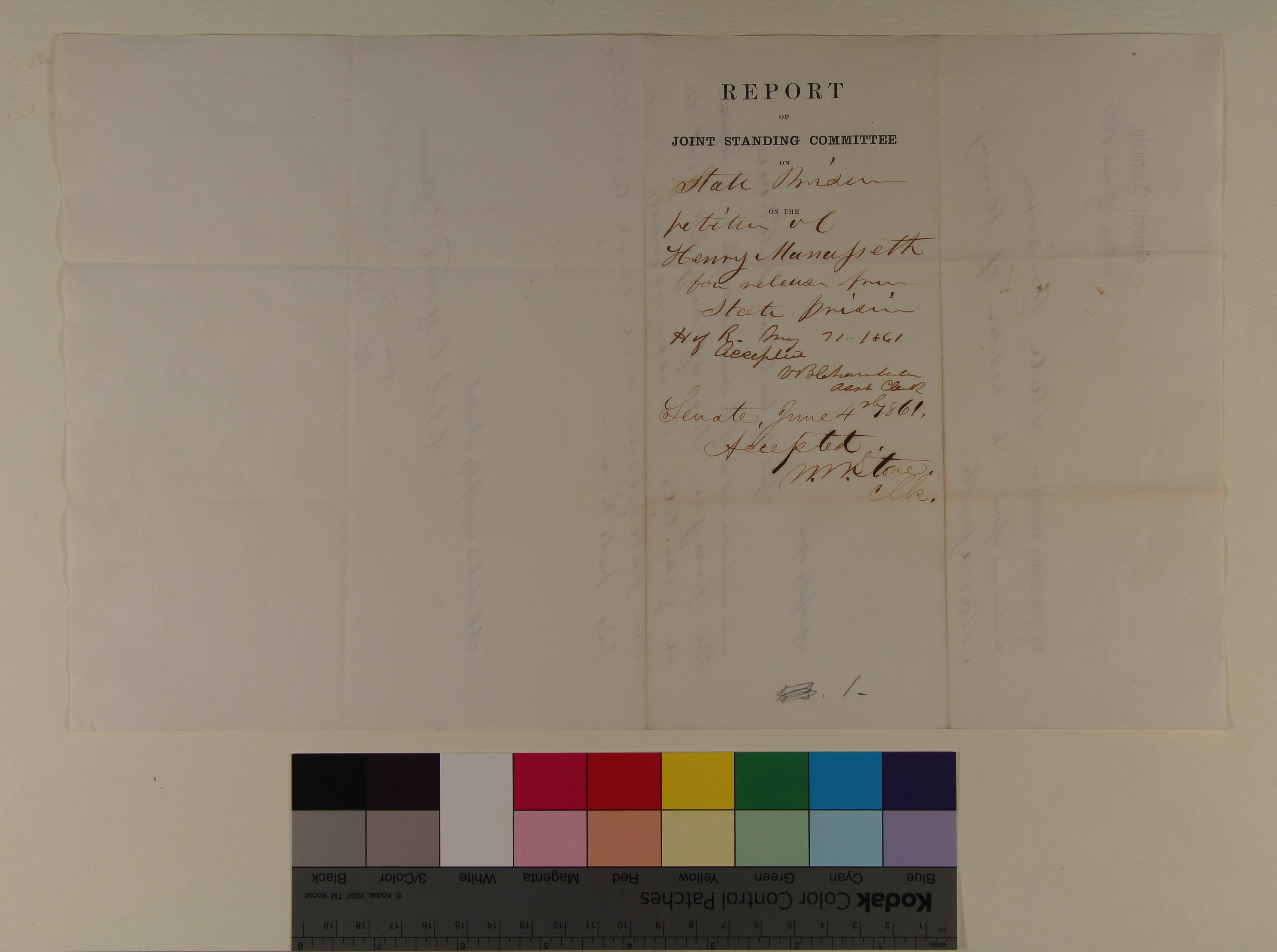 Report of the Joint Standing Committee on the Petition of Henry Manasseth for Release from State Prison