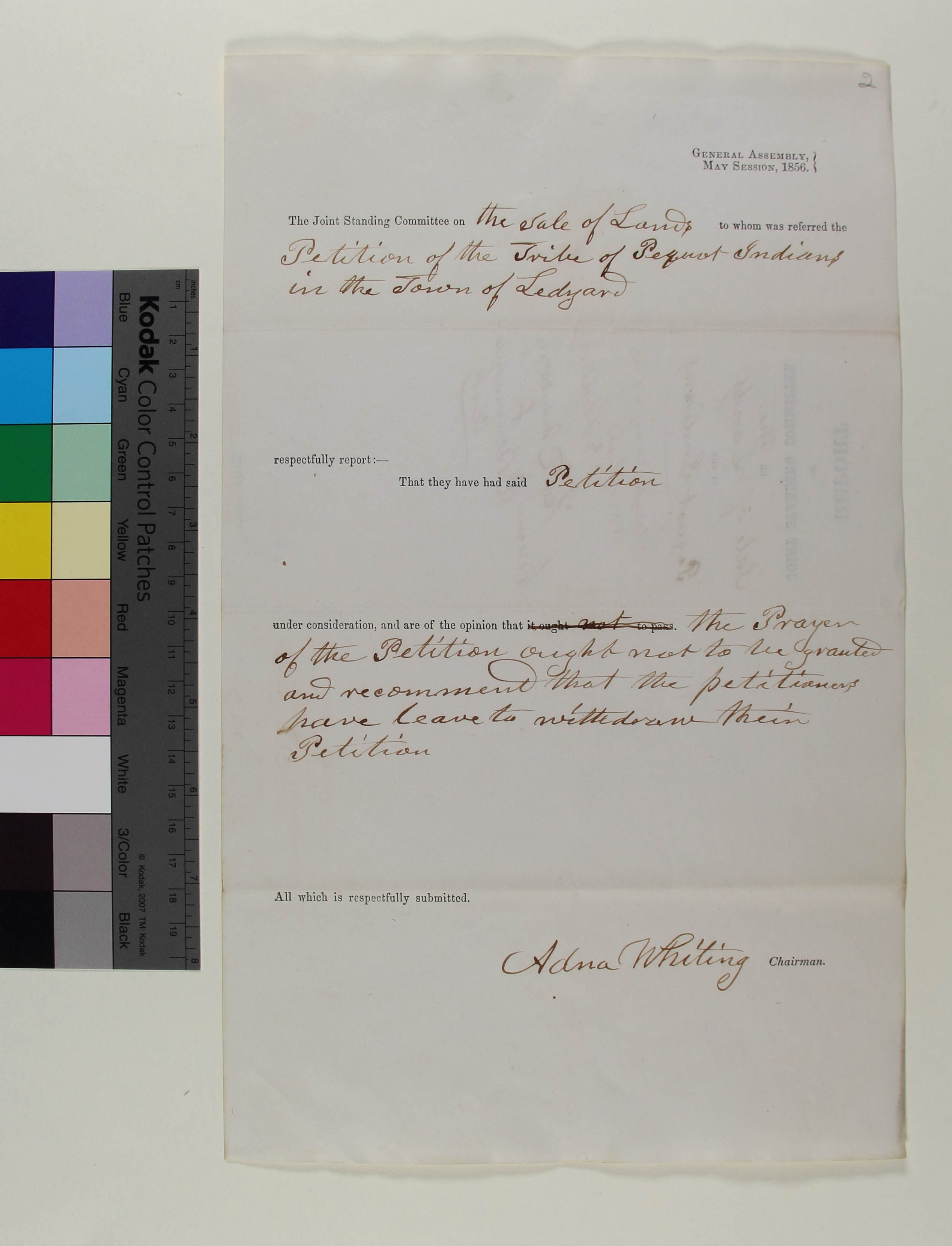 Report of the Joint Standing Committee on the Petition of the Pequot Indians of Ledyard for Restoration of their Lands