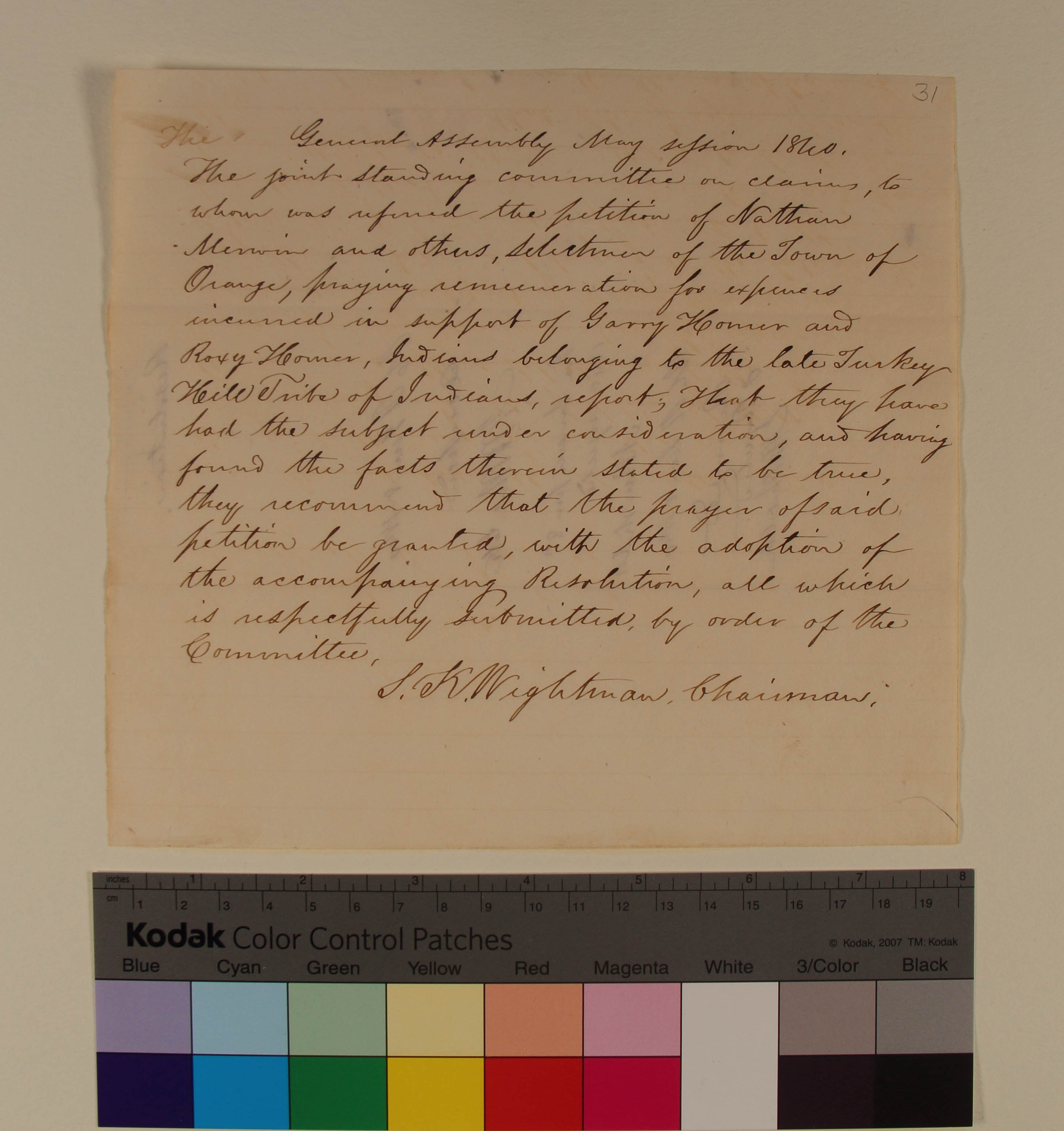 Report of the Joint Standing Committee on the Petition of the Town of Orange to be Reimbursed Expenses of Supporting Indian Paupers