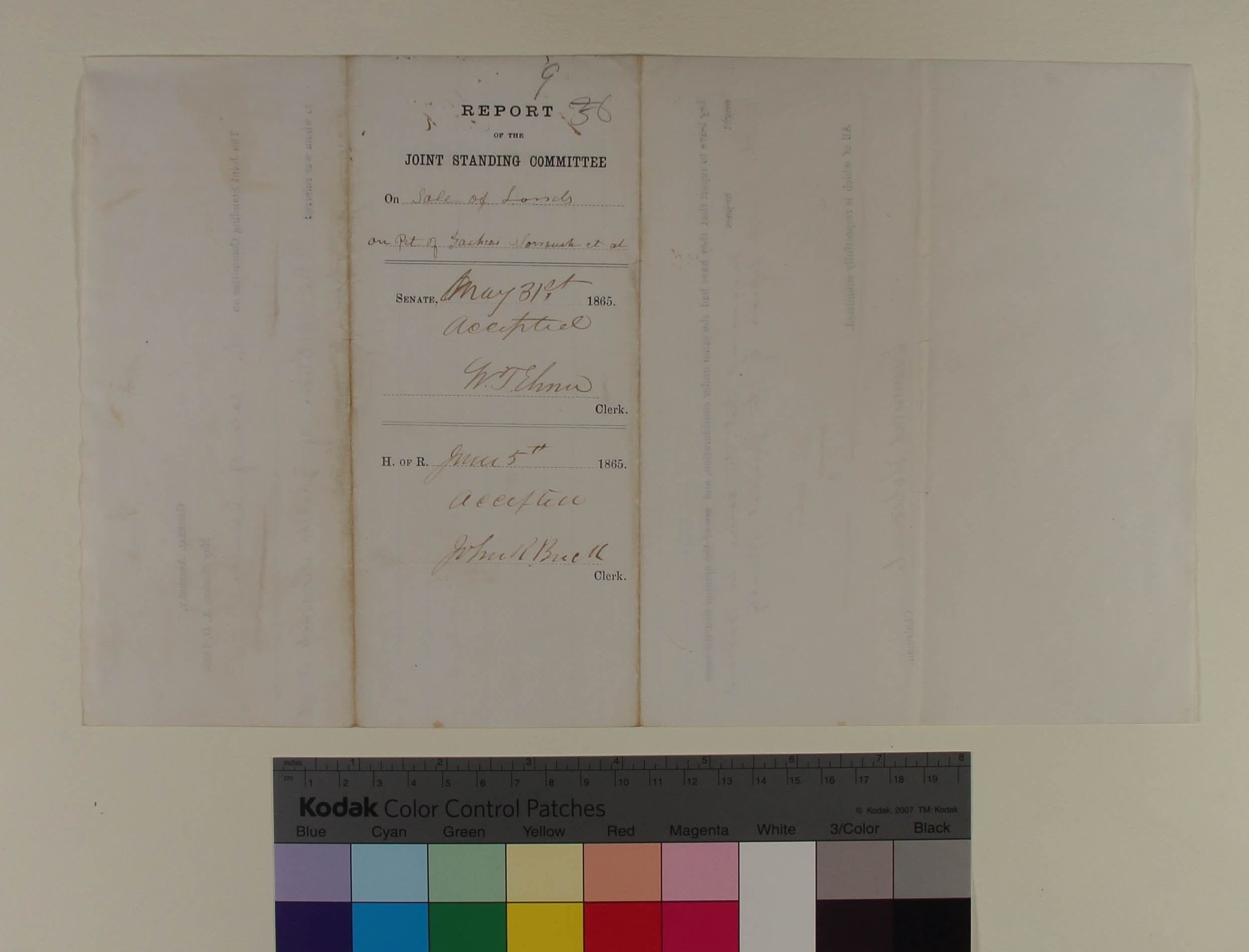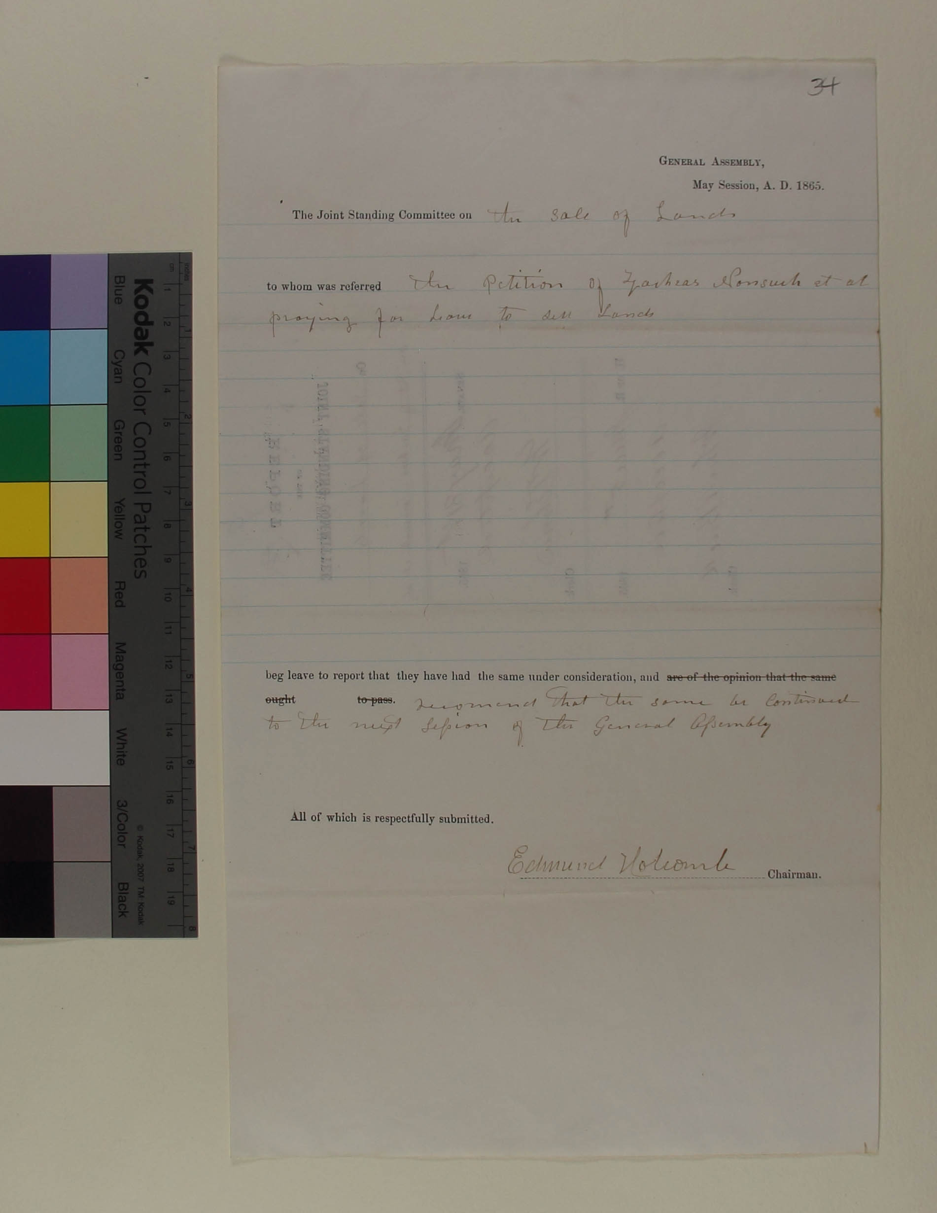 Report of the Joint Standing Committee on the Petition of Zacheus Nonesuch, et. al, for Leave to Sell Land