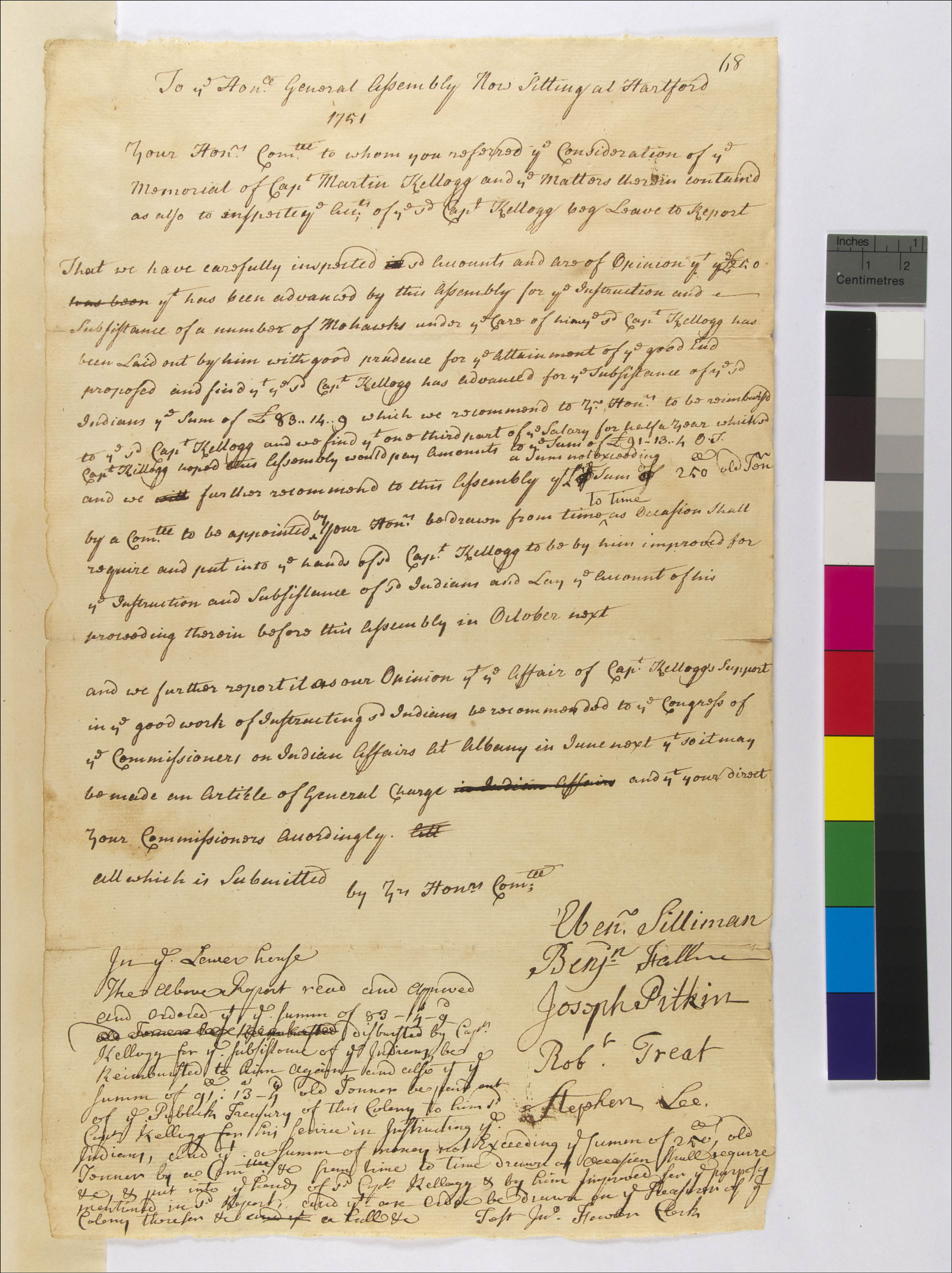 Accounting/Finance -- Expenses; Education/Schools; Government -- Colonial -- Colony of Connecticut -- General Assembly -- Committees; Law -- Legislative Process -- Reports; Relations -- Colonial Affairs; Repository -- Connecticut State Library; Tribes/Communities -- Mohawk; YIPP -- Colony of Connecticut Collection, 1603-1783