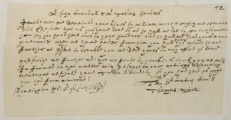 Letter from Thomas Stanton, Sr. and Thomas Minor to John Crandall and Tobias Saunders
