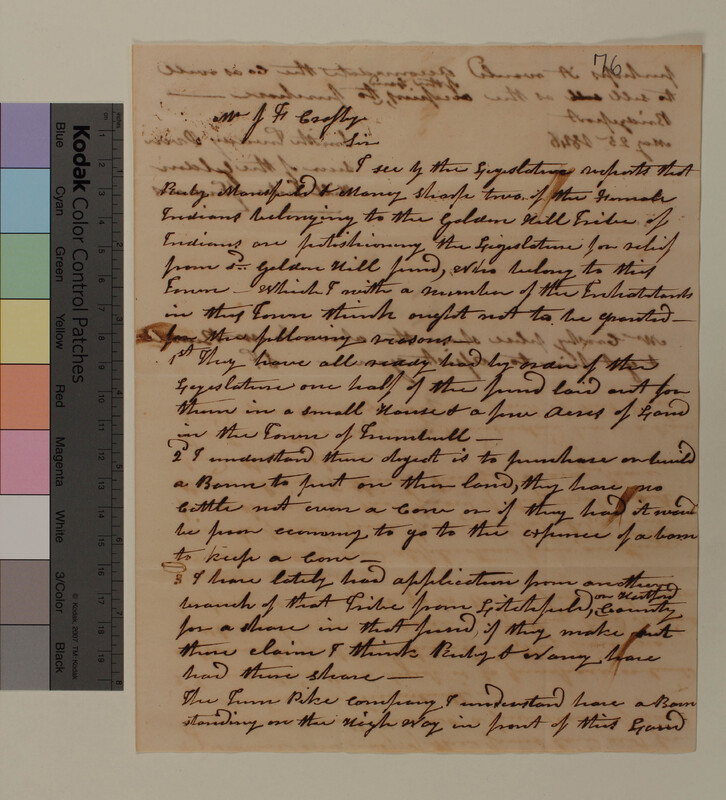 Letter of John W. DeForest to Henry Baker regarding Mohegan Indians
