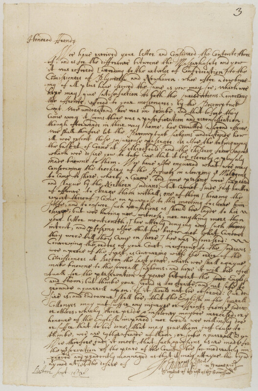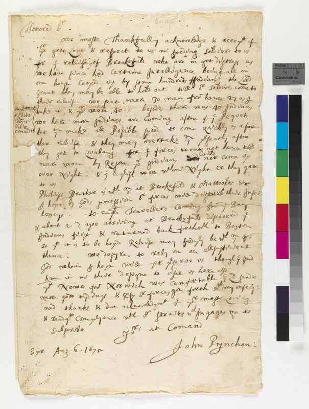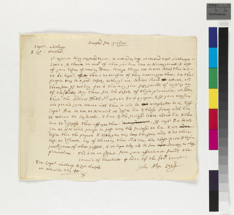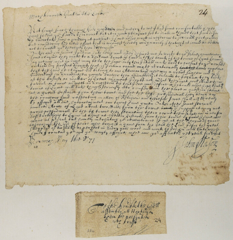 Letter from John Endicott to the General Court of Connecticut